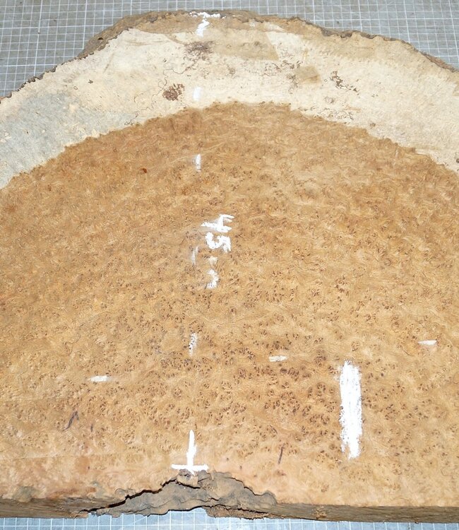 Amboina Maser, ca. 820 x 450 x 54-60mm, 12,7kg, luftgetrocknet, Einschnitte. Sie erhalten das abgebildete Einzelstück.