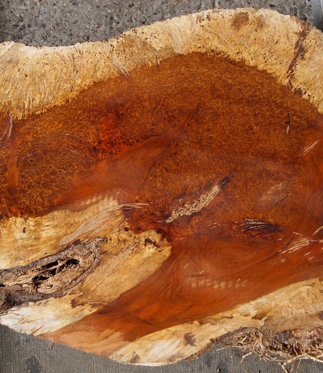 Amboina Maser, ca. 845 x 465 x 50mm, 5kg, luftgetrocknet, Einschnitt 11.2023. Sie erhalten das abgebildete Einzelstück!