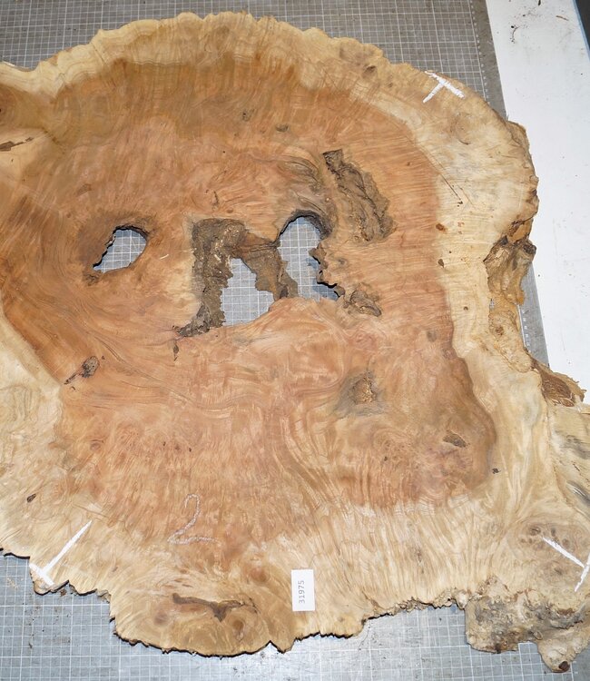 Amboina Maser, ca. 960 x 720 x 42mm, 13,4kg, luftgetrocknet, Borkeneinwuchs. Sie erhalten das abgebildete Einzelstück.