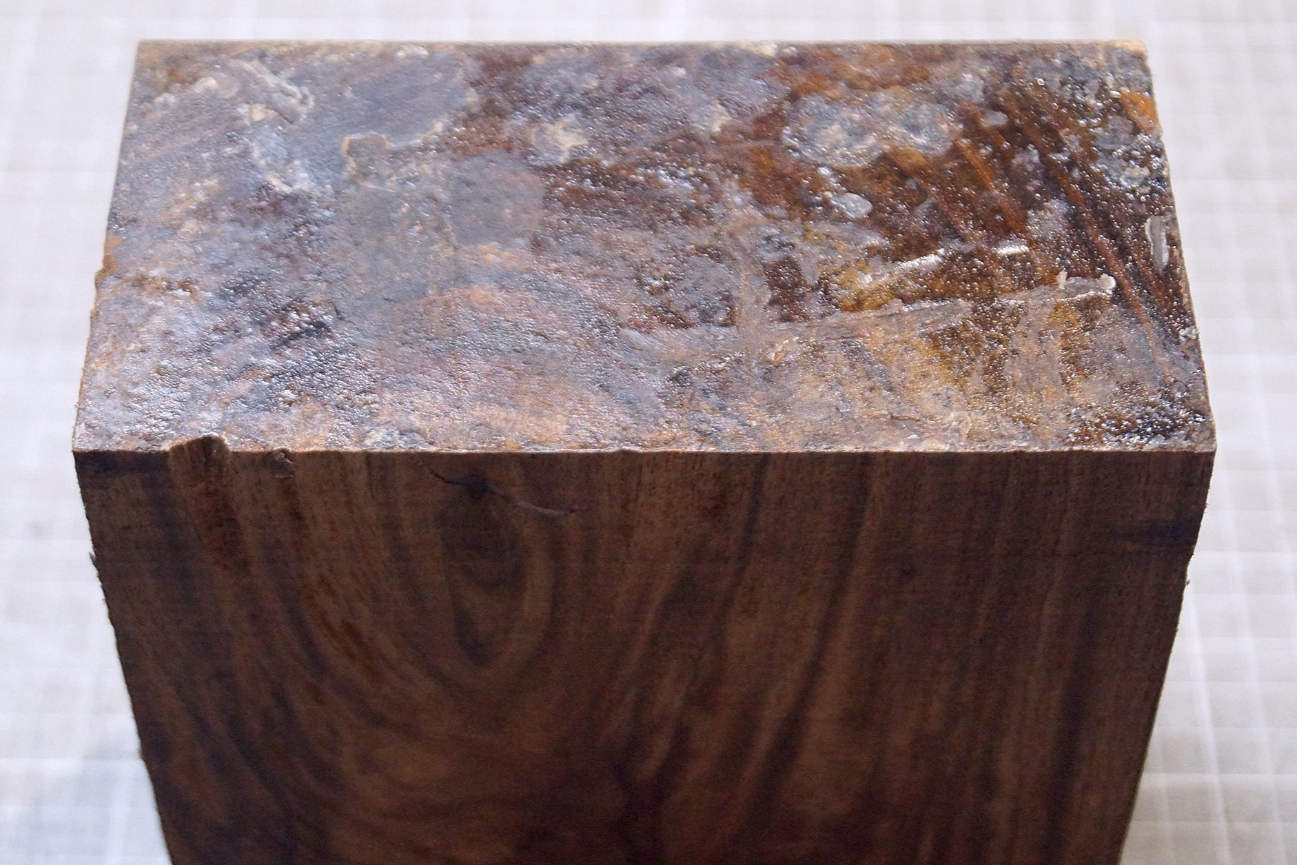 Bocote, ca. 151 x 156 x 77mm, 1,6kg, luftgetrocknet, Einschnitt ca. 2012. Sie erhalten das abgebildete Einzelstück.
