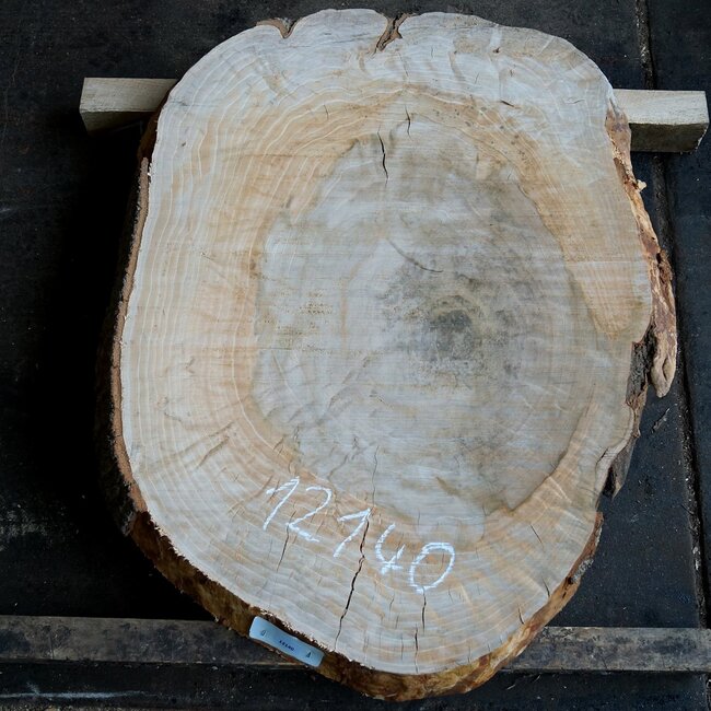 Buche Tischplatte, ca. 1050 x 800 x 52 mm, 12140, ca. 30 kg, künstlich getrocknet, stark geschüsselt, rissig! Sie erhalten das abgebildete Einzelstück.