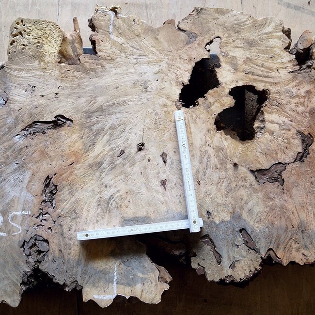Buckeye Maser, ca. 1080 x 570 x 55mm, 11,0kg, künstlich getrocknet, Borkeneinwüchse, Lehmeinschlüsse. Sie erhalten das abgebildete Einzelstück!