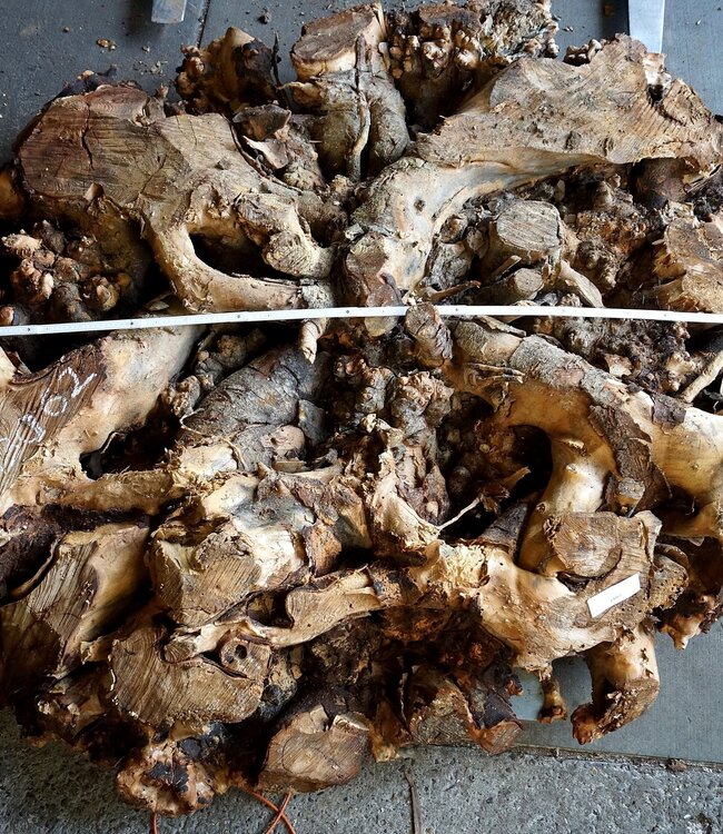 Buckeye Maser Tischsockel, ca. 1700 x 1600 x 140-220 mm, 13062, Faulstelle, künstlich getrocknet, Borkeneinwüchse und Lehmeinschlüsse möglich.