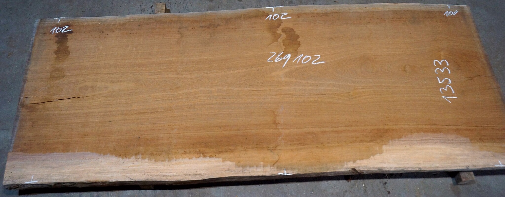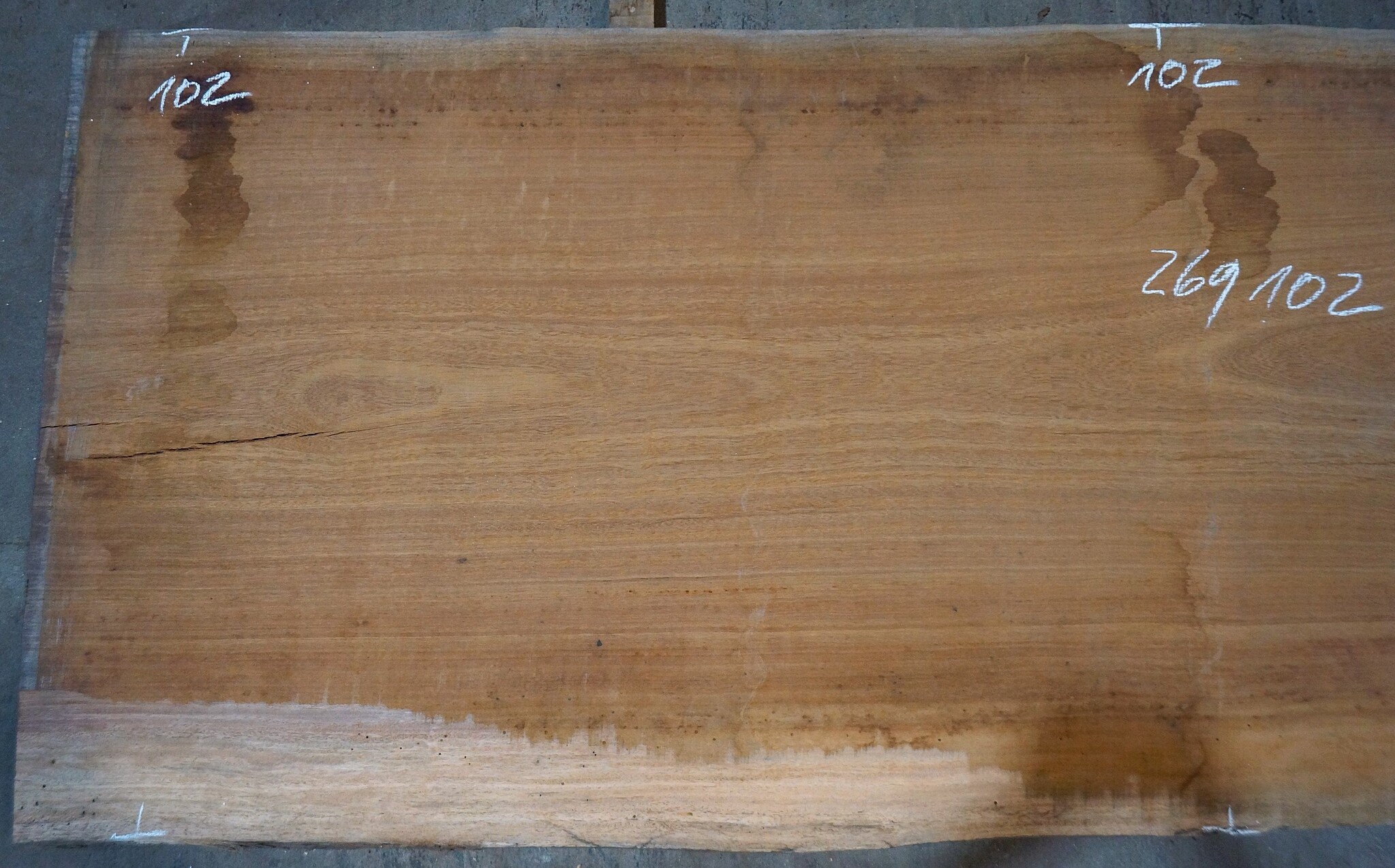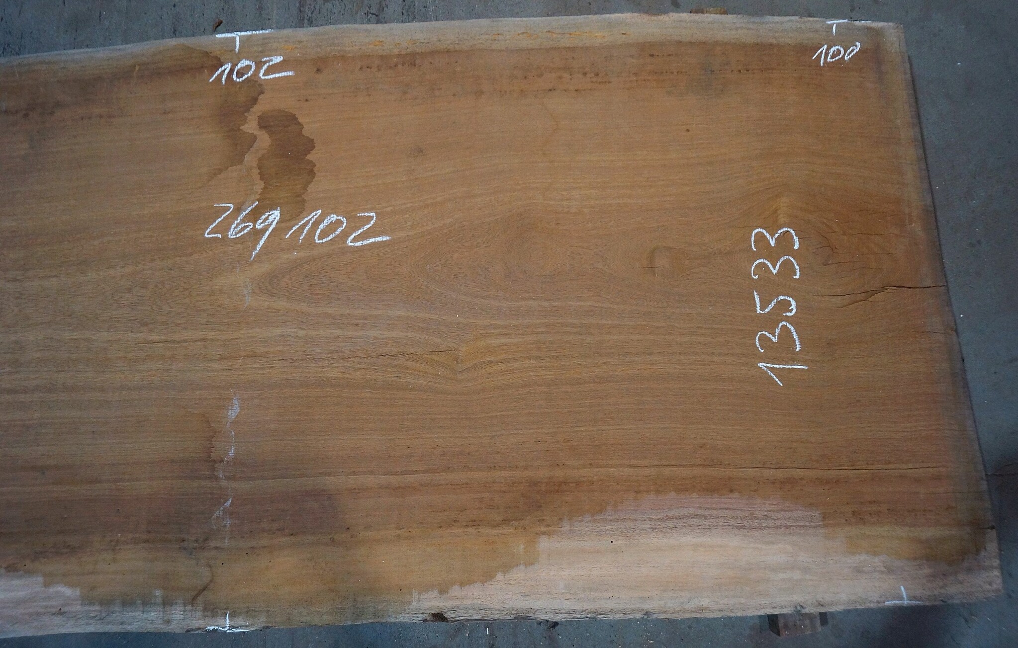Eyeck Tischplatte, ca. 2600 x 1020 x 52 mm, 13533, ca. 105 kg, künstlich getrocknet, geschüsselt, Insektenfraß im Splint, Risse. Sie erhalten das abgebildete Einzelstück