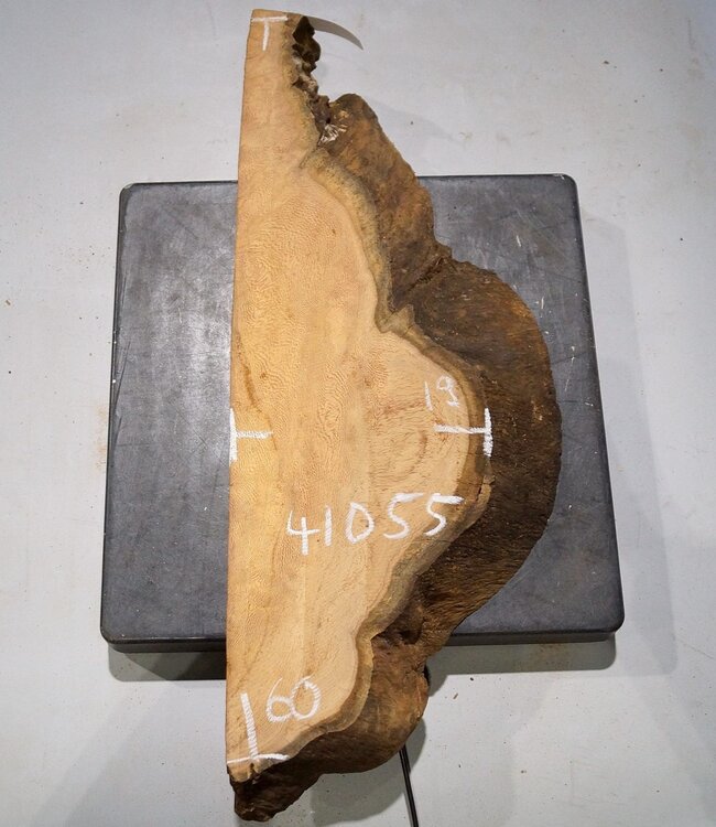Maserplatte, gefräst, ca. 600 x 190 x 55 mm, 41055, 3,9 kg, luftgetrocknet, Einschnitt 11.2023, kleinere Risse.