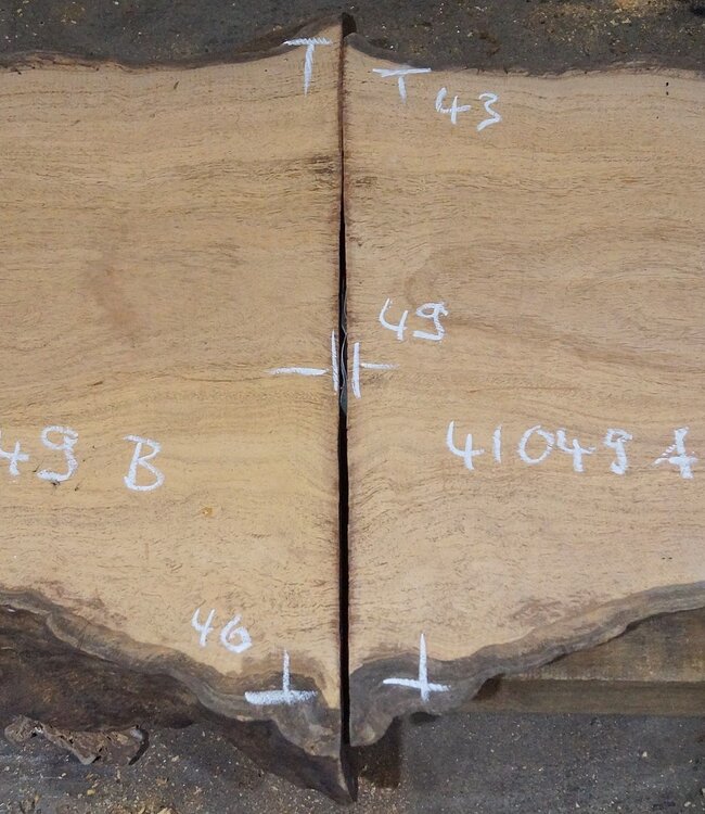 Maserplatten Paar, gefräst, ca. 490/500 x 430/460 x 50 mm, 41049, 12,1 kg, luftgetrocknet, Einschnitt 11.2023, Risse, Insektenfraß.