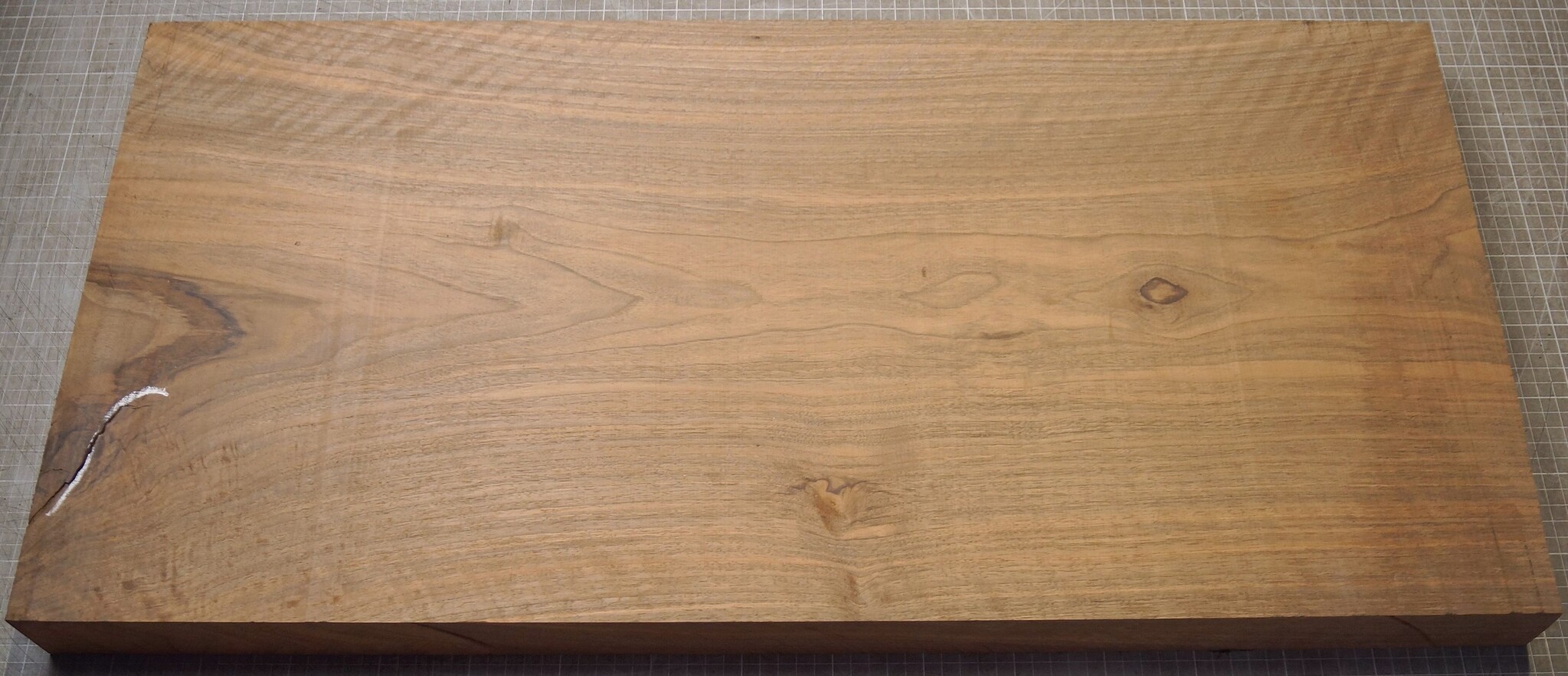 Kaukasischer Nussbaum, geriegelt, ca. 820 x 390 x 55 mm, luftgetrocknet, Äste, Risse. Sie erhalten das abgebildete Einzelstück.