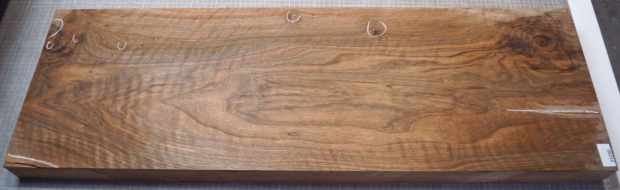Kaukasischer Nussbaum, geflammt, ca. 990 x 320 x 58 mm, luftgetrocknet, Risse, Äste. Sie erhalten das abgebildete Einzelstück!