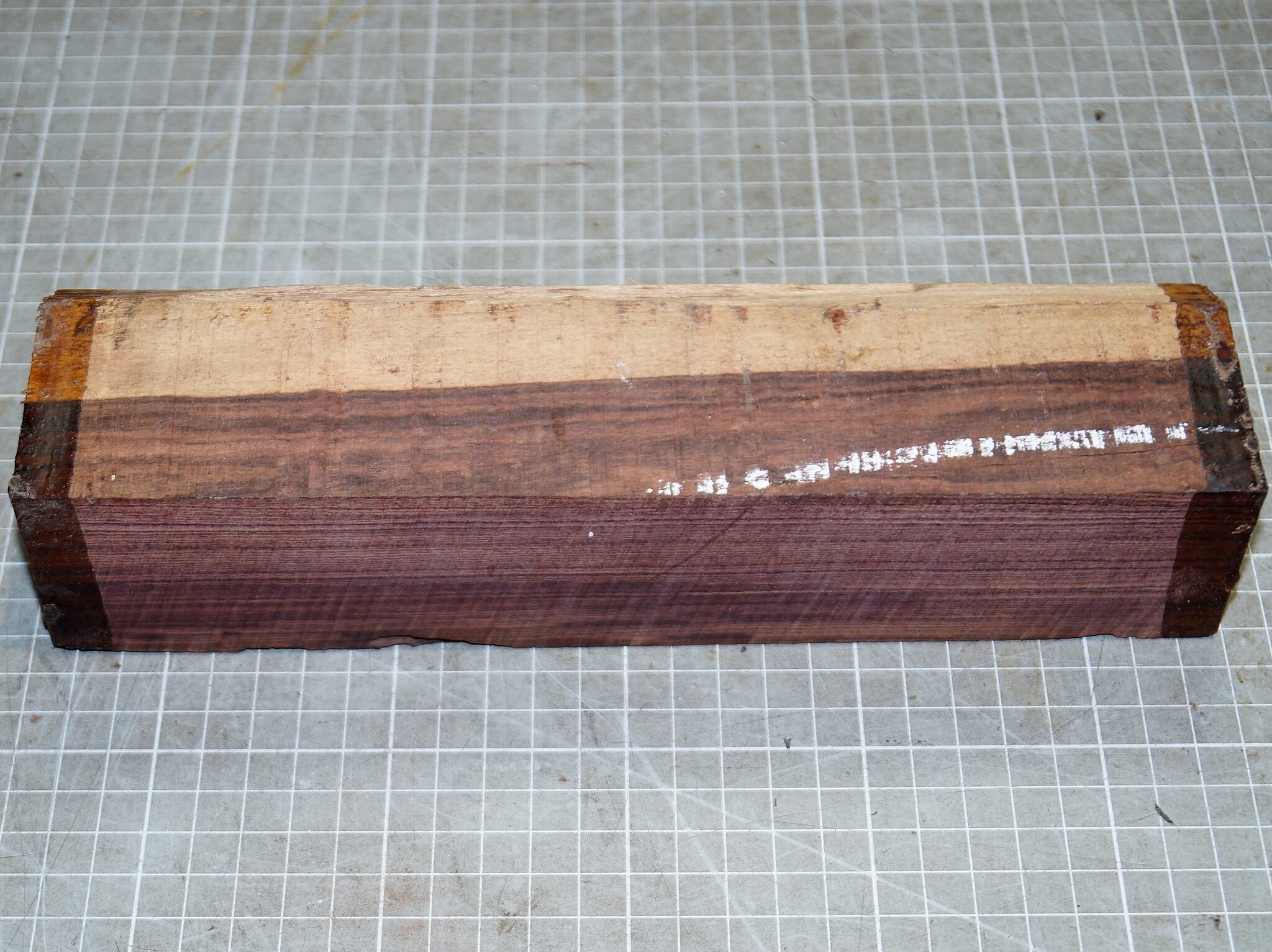 Königsholz, Veilchenholz, ca. 252 x 70 x 55mm, 0,74kg, luftgetrocknet, Splint, Kernrisse, Einschnitt 2016. Sie erhalten das abgebildete Einzelstück!