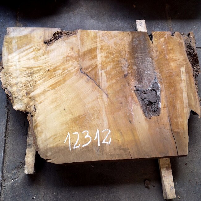 Laurel Maser, Tischplatte, ca. 1250 x 890 x 65 mm, 12312, ca. 37 kg, luftgetrocknet, ca. 10 Jahre abgelagert, Risse, relativ schlicht. Sie erhalten das abgebildete Einzelstück!