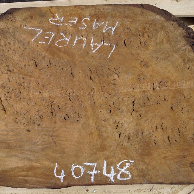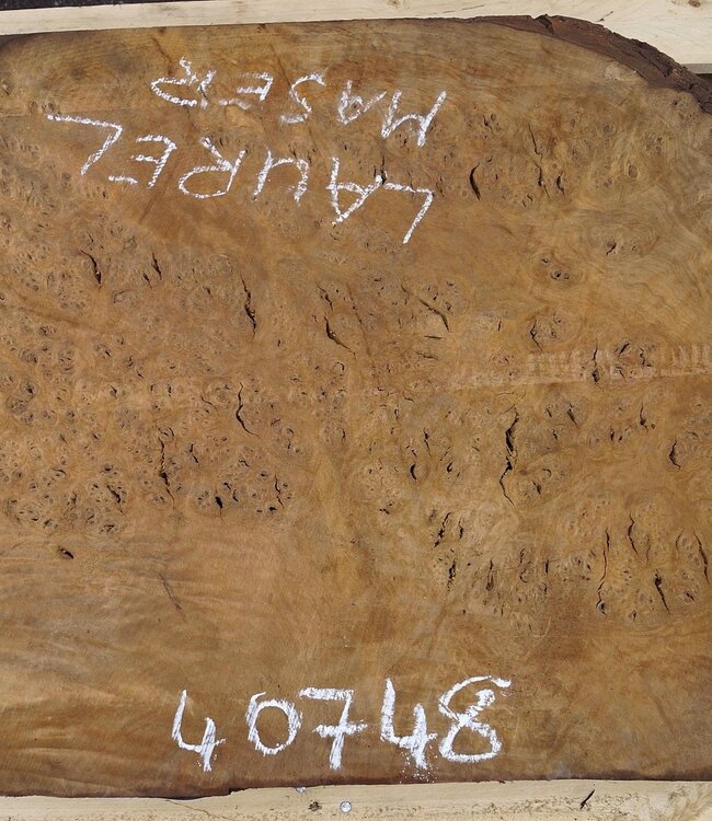 Laurel, Maserplatte, ca. 1050 x 610 x 65 mm, 40748, 18,7 kg, lange abgelagert. Borkeneinwüchse, Risse, Äste sind möglich. Sie erhalten das abgebildete Einzelstück!