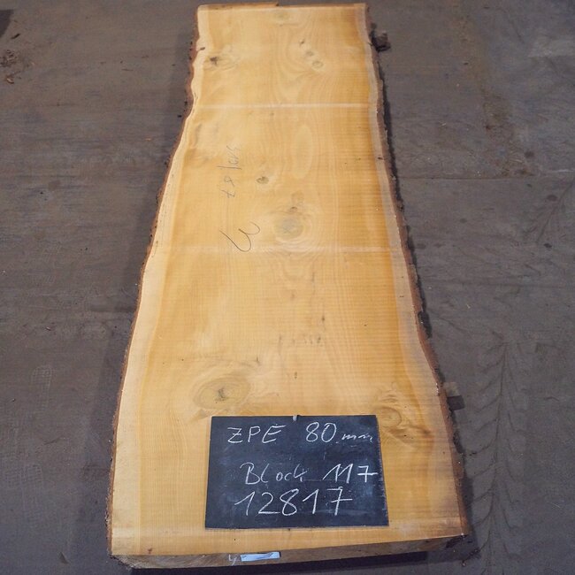 Libanon Zeder Tischplatte, ca. 3100 x 870(980) x 80 mm, 12817, luftgetrocknet, Einschnitt 2021, Risse & Äste sind bei Libanon Zeder normal. Sie erhalten das abgebildete Einzelstück!