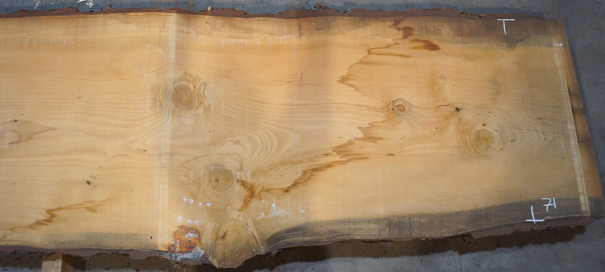 Libanon Zeder Tischplatte, ca. 5000 x 960/810/710 x 62 mm, 13648, ca. 126 kg, luftgetrocknet, Äste, Risse. Sie erhalten das abgebildete Einzelstück!