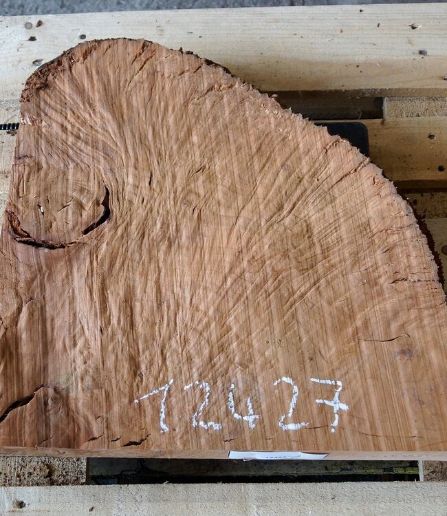 Madrona Maserplatte, ca. 520 x 500 x 40 mm, 12427, luftgetrocknet, Einschnitt 08.2019, verzogen, Risse! Sie erhalten das abgebildete Einzelstück.