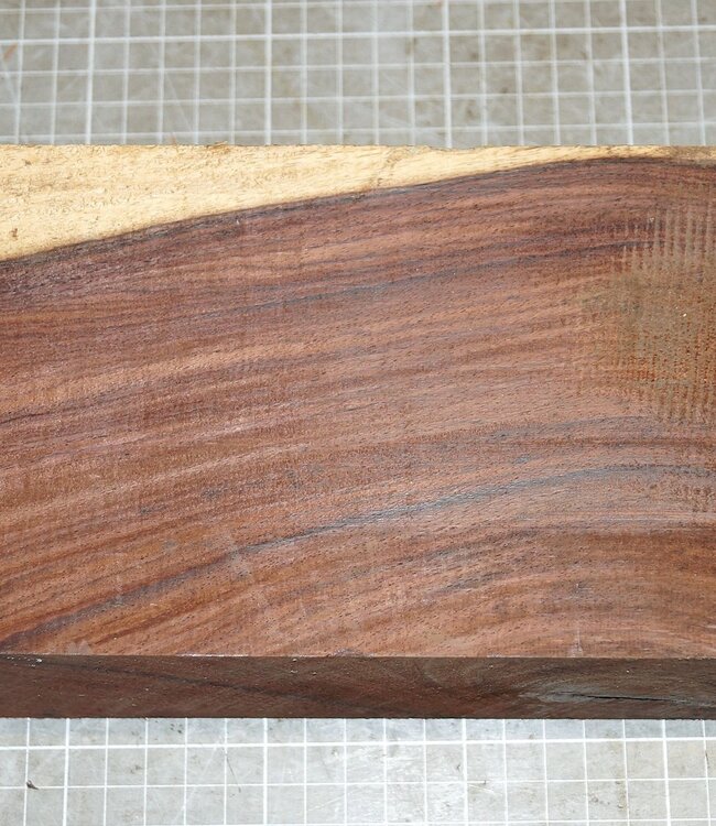Ostindisch Palisander, ca. 300 x 120 x 70mm, 2,2kg, luftgetrocknet, Risse, Äste, Splint.