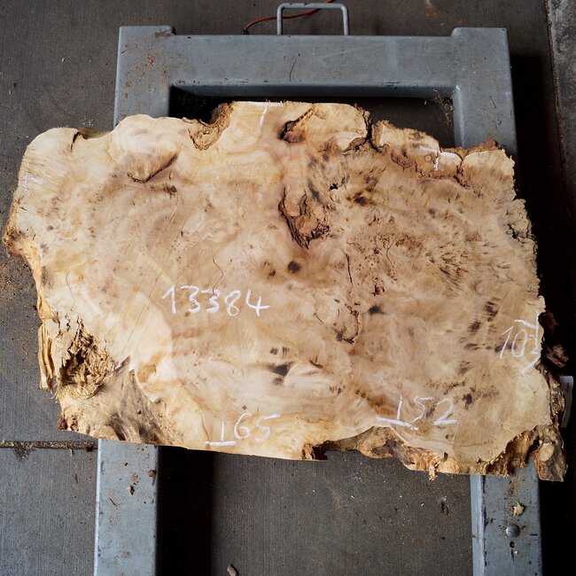 Pappel Maser Tischplatte, ca. 1030 x 520/650 x 55mm, 13kg, künstlich getrocknet, geschliffen, stark verzogen. Sie erhalten das abgebildete Einzelstück.