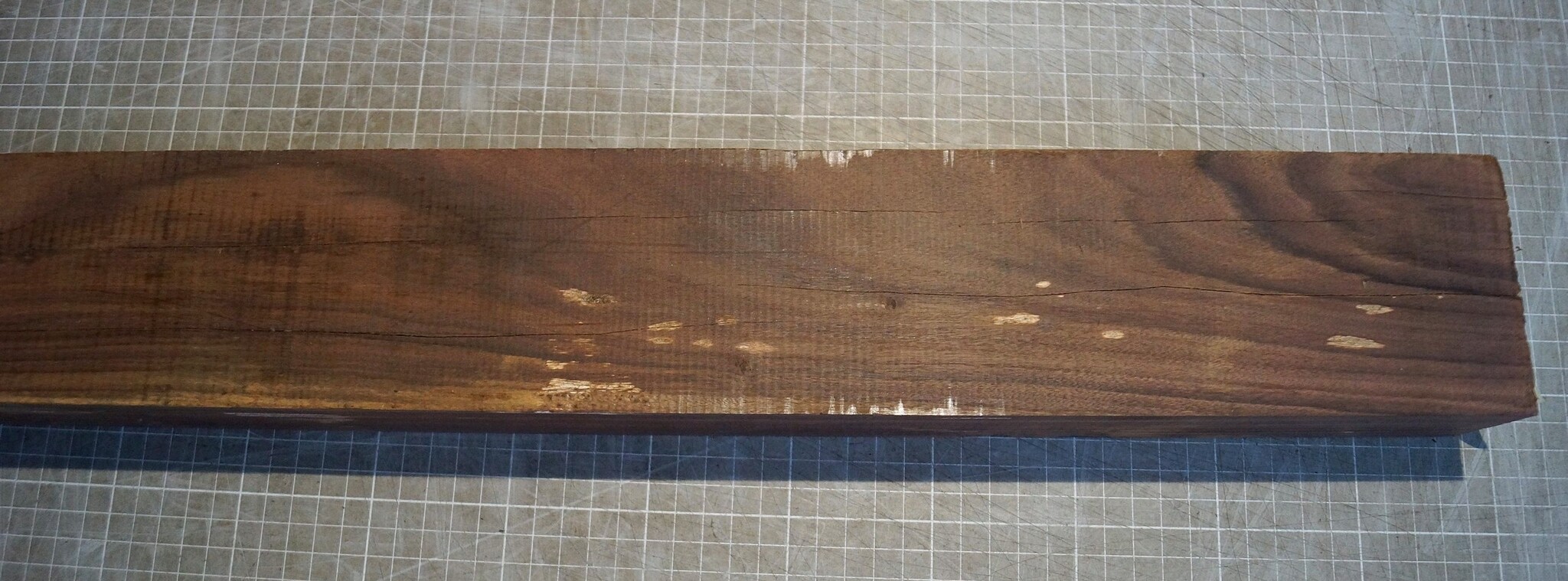 Santos, Morado Palisander, ca. 900 x 87 x 51 mm, 3,8 kg, luftgetrocknet, Einschnitt ca. 2020, Risse. Sie erhalten das abgebildete Einzelstück!