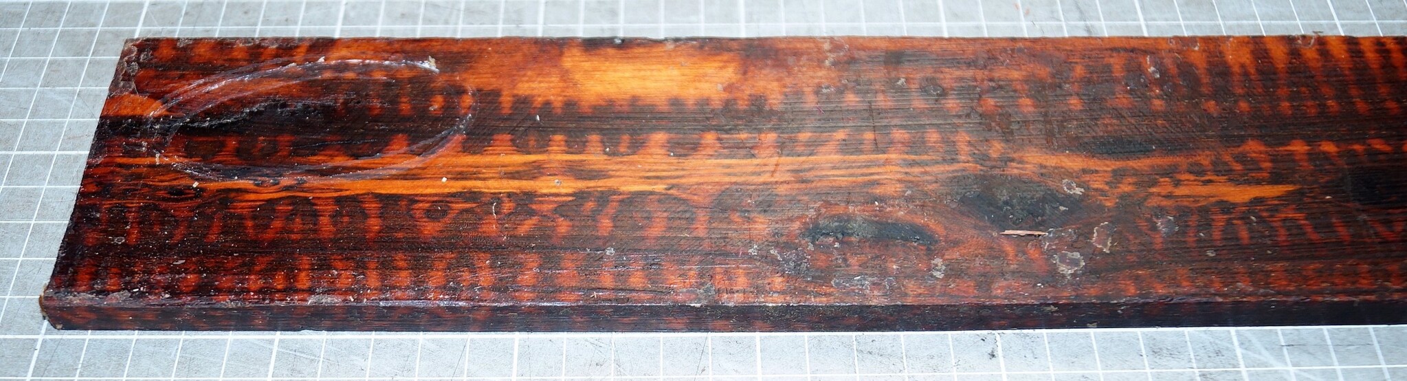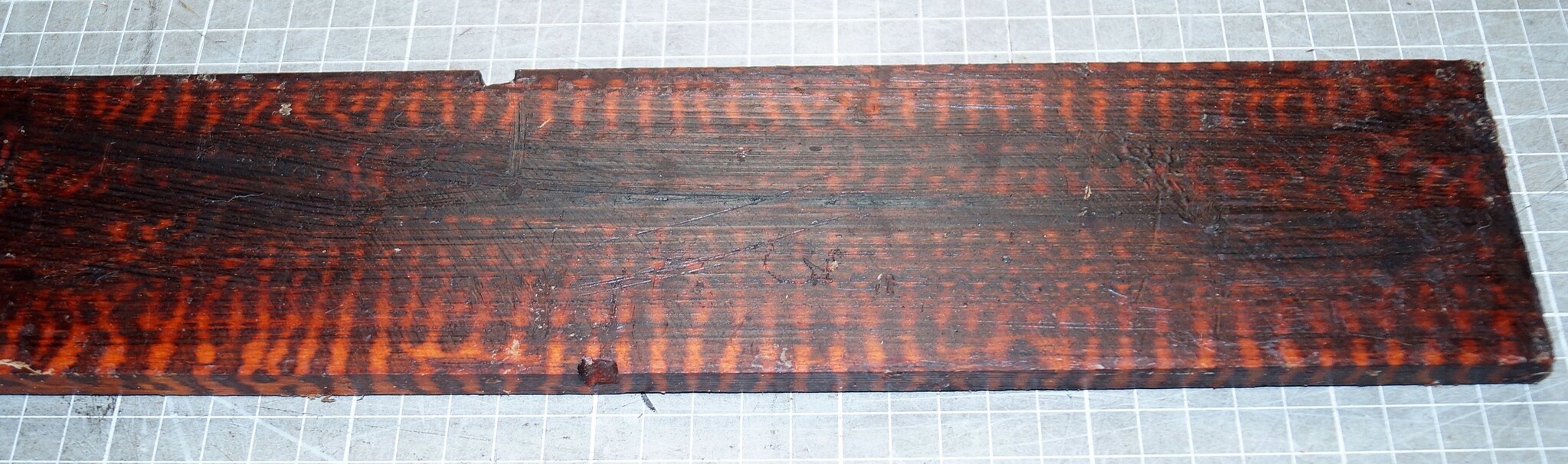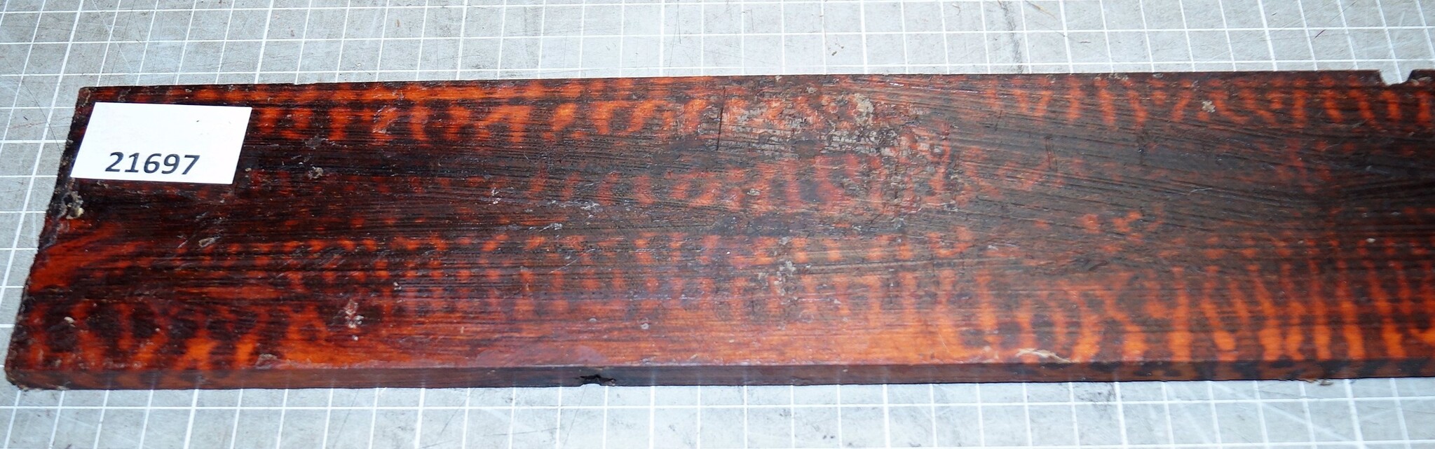 Schlangenholz Griffbrett, ca. 530 x 75 x 10 mm, 21697, luftgetrocknet, Einschnitt 2024, Riss. Sie erhalten das abgebildete Einzelstück!