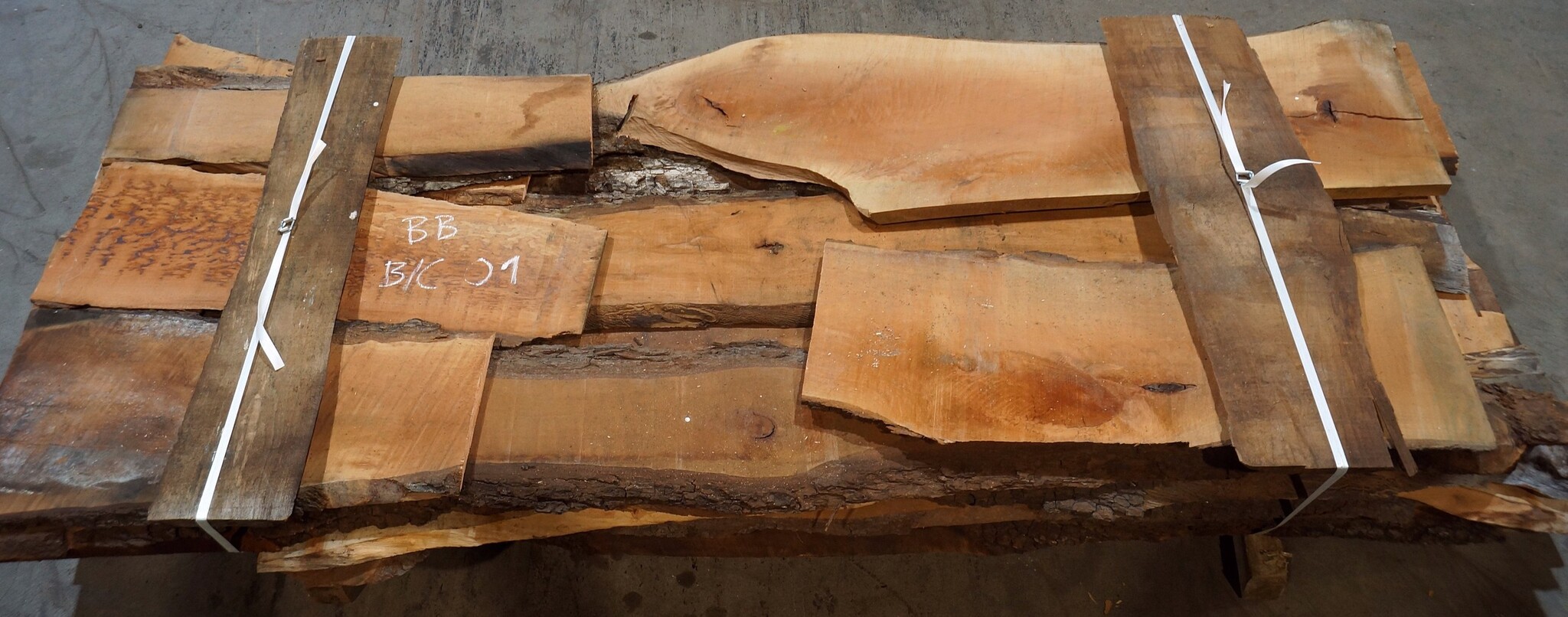 Schnittware, B/C Qualität, Birne gedämpft 26 mm Stärke, BB 01, Paketmaß ca. 2600 x 1100 x 330 mm, ca. 230 kg, künstlich getrocknet. Insektenfraß, Risse, Äste möglich. Sie erhalten das abgebildete Paket.