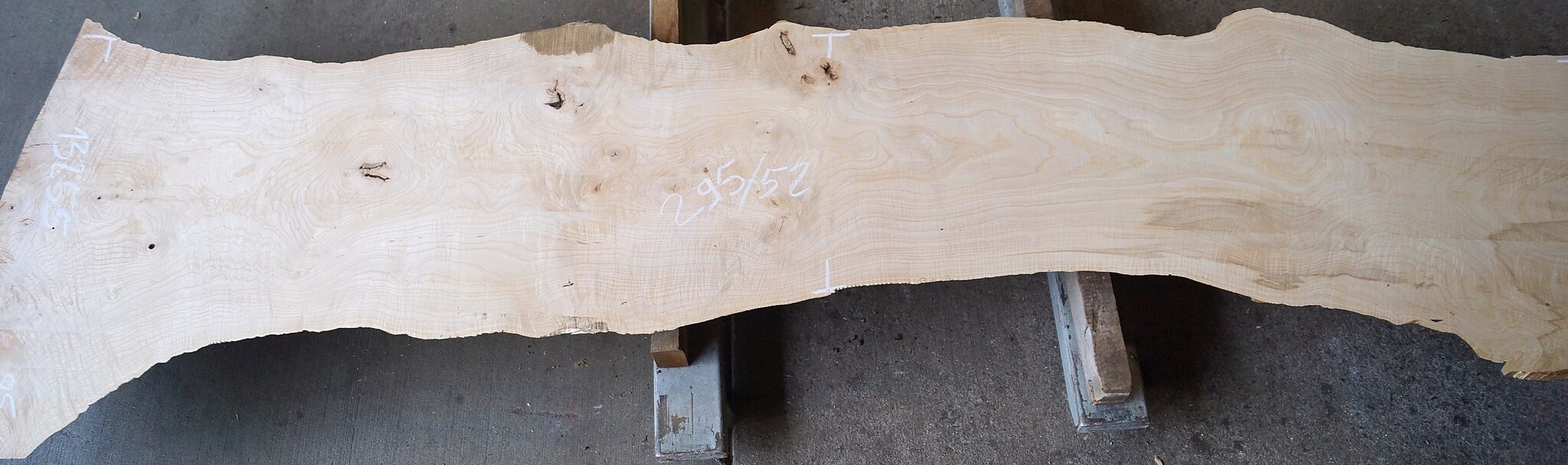 Ash burl, approx. 2950 x 850/520/590 x 65 mm, 13255, milled, kiln dried, knots. You will receive the product as shown.