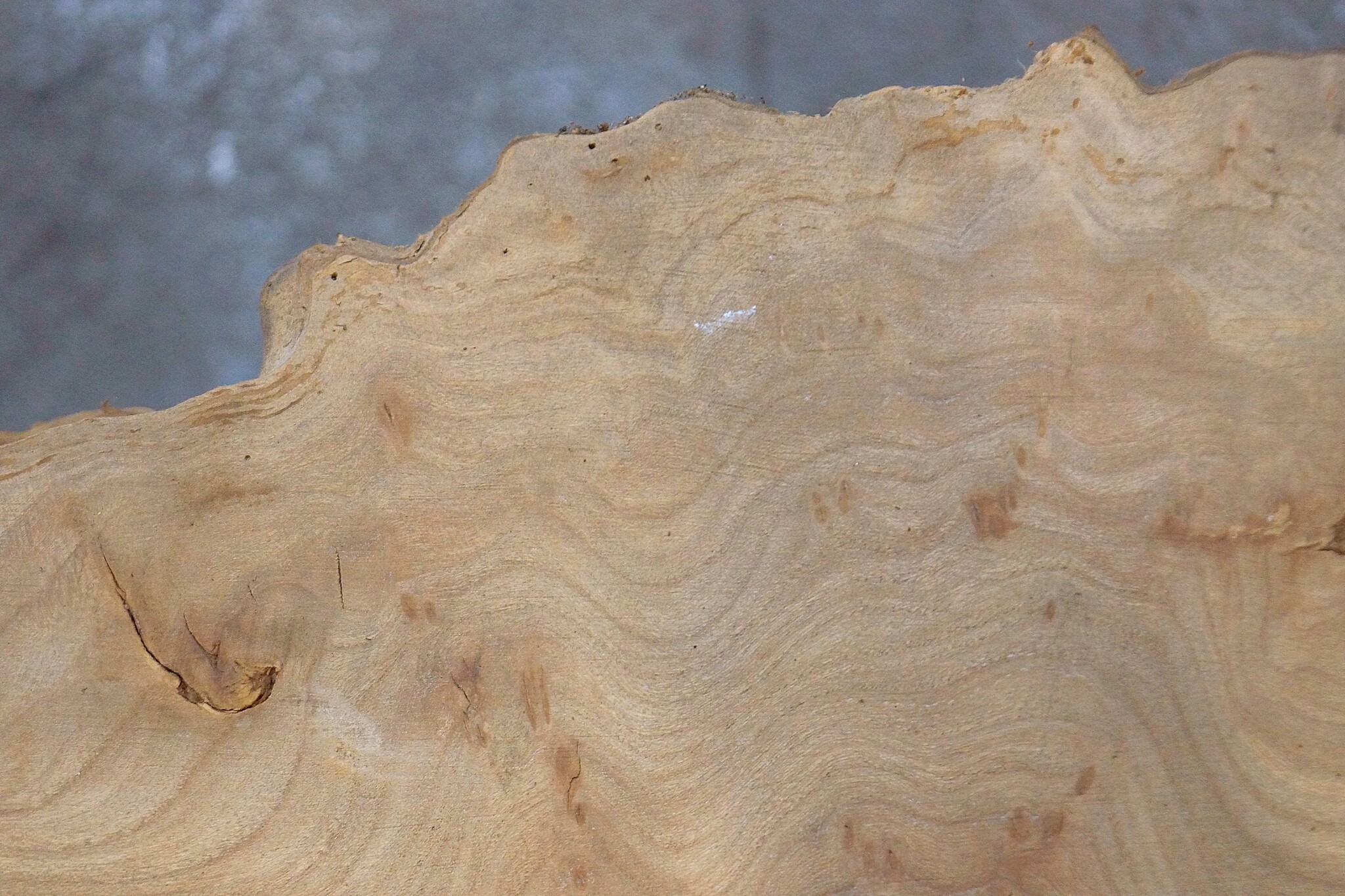 Caucasian Elm, burl slab, milled, approx. 2400 x 780 x 62 mm, 13706, air dried, cracks, curved, insect holes. You will receive the product as shown.