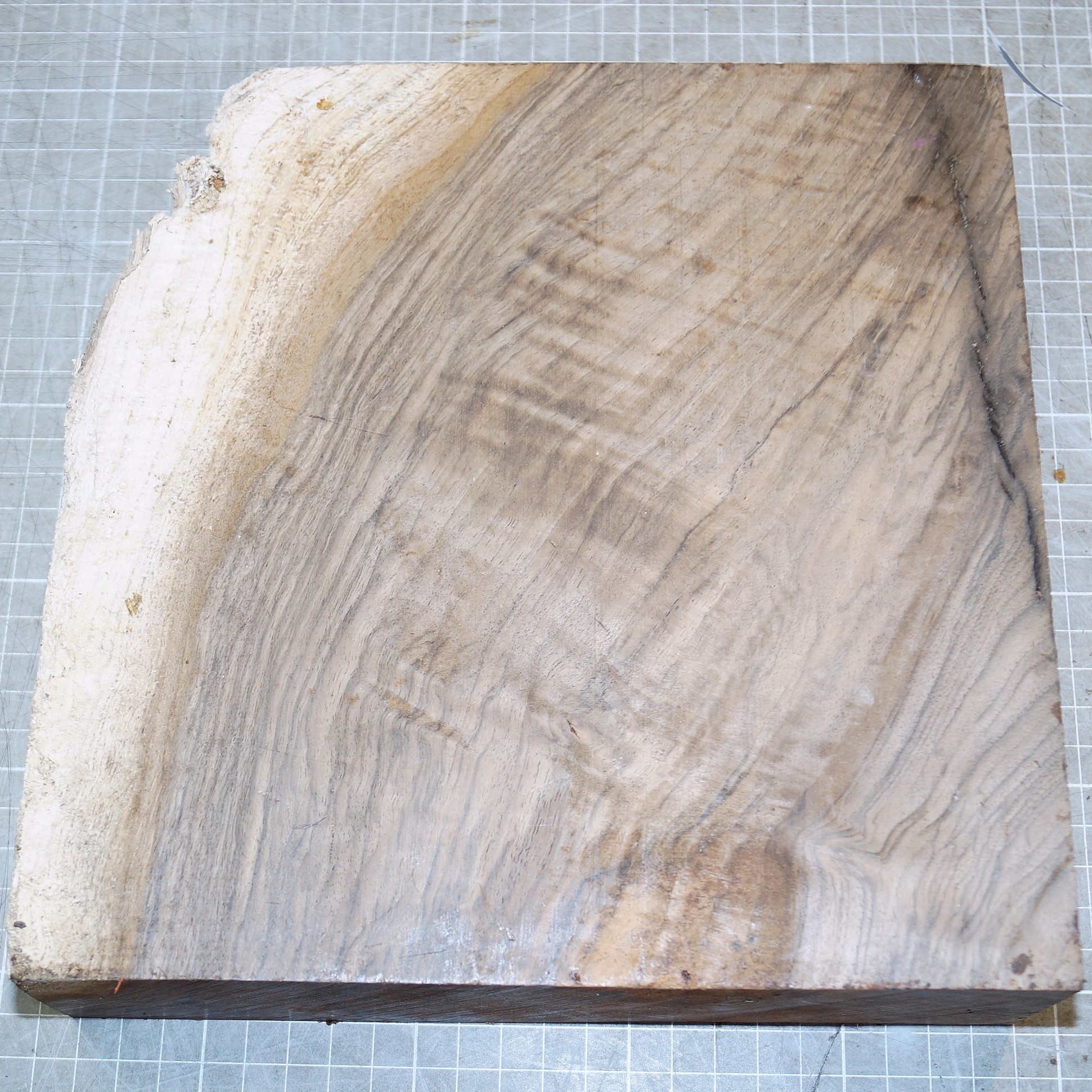 Caucasian walnut burl, approx. 220 x 220 x 62mm, 2,08kg, air dried, bark inclusion. You will receive the product as shown on the pictures