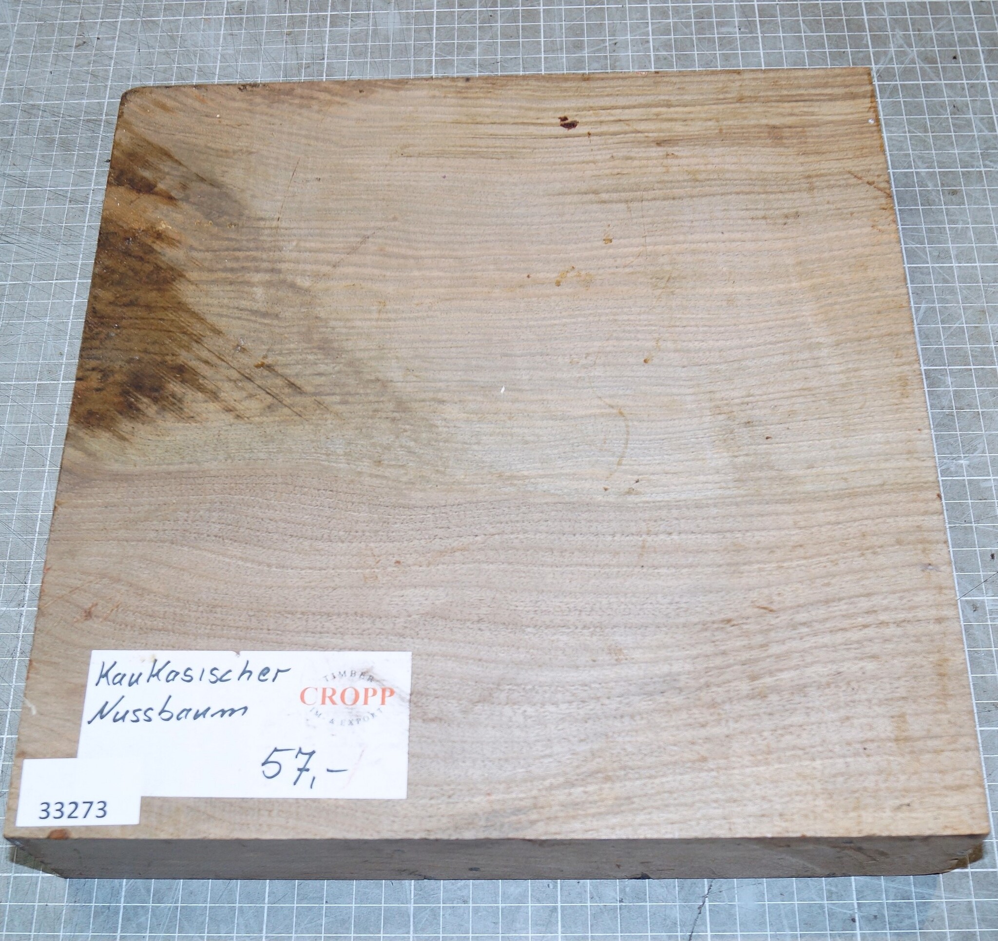 Caucasian walnut burl, approx. 302 x 305 x 60mm, 3,28kg, air dried. You will receive the product as shown on the pictures