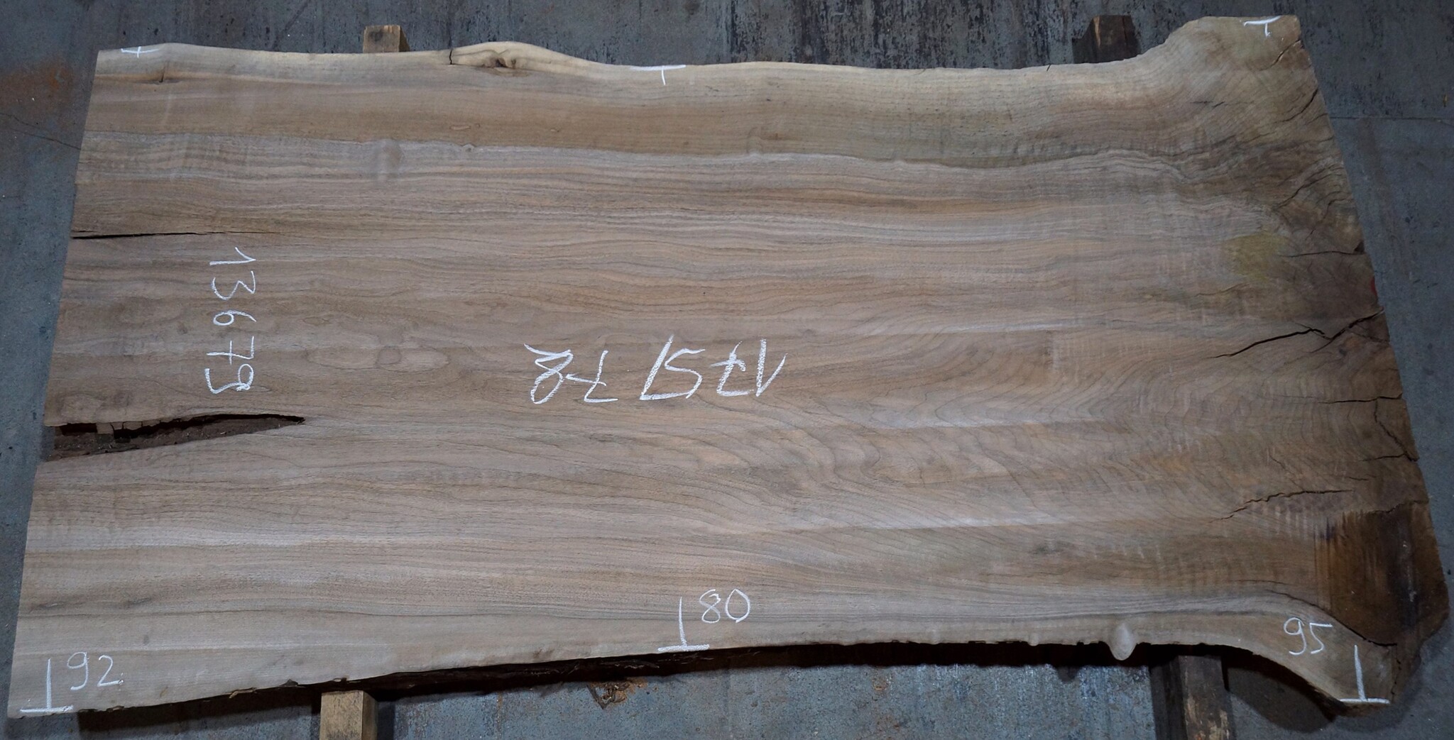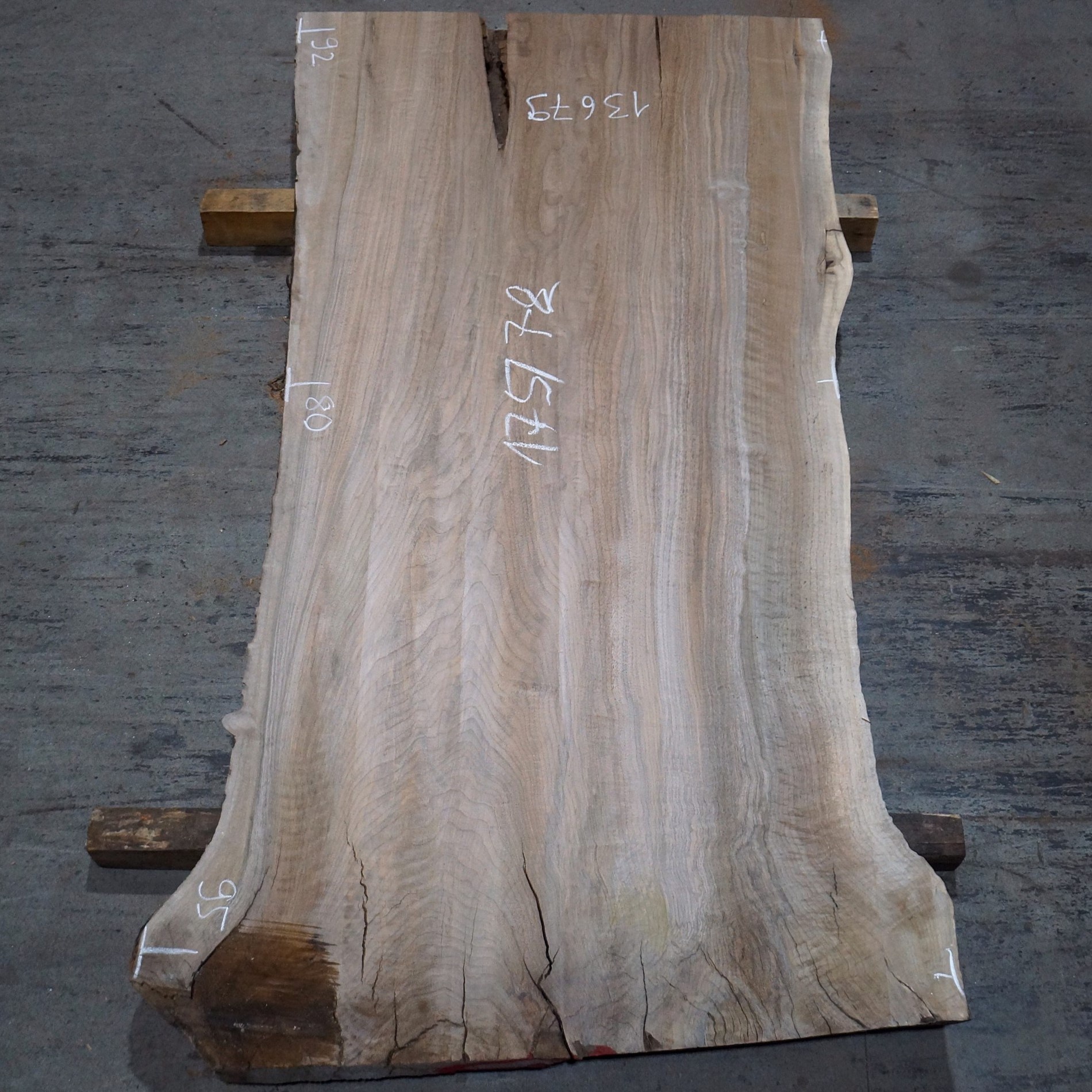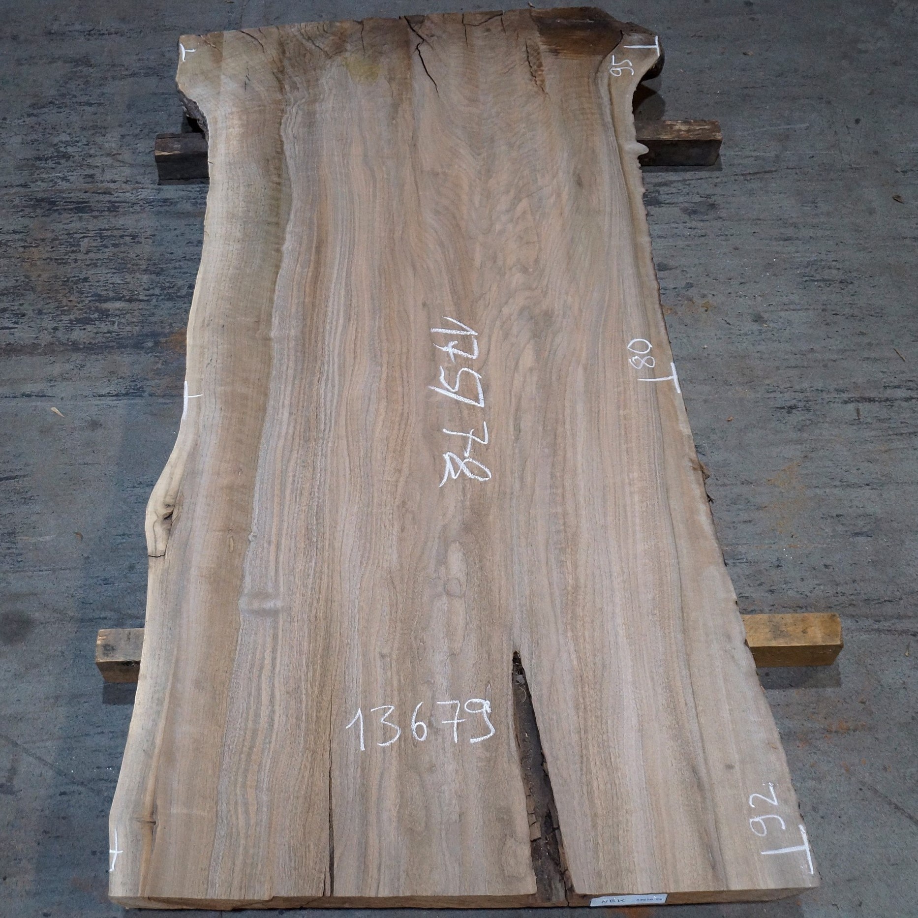 For better reference see measurements on the pictures. This piece is flat milled. Differences in the form, as well as slight differences in the dimensions are unavoidable during drying process. Small cracks or blemishes are no defects. Delivery only by forwarder or pick up. We are happy to help regarding all questions of transport and we can arrange shipping.