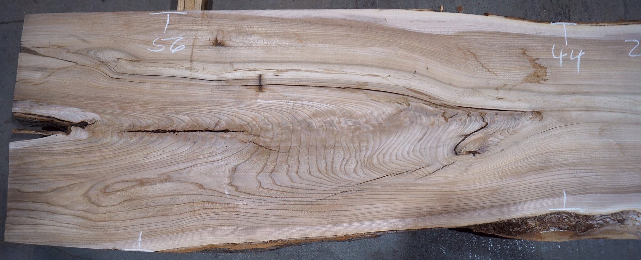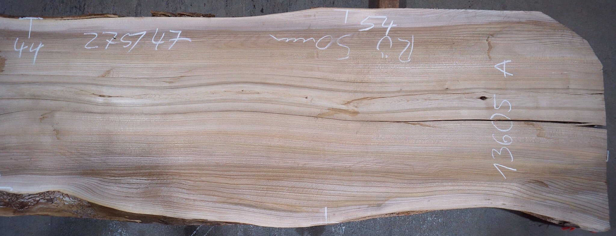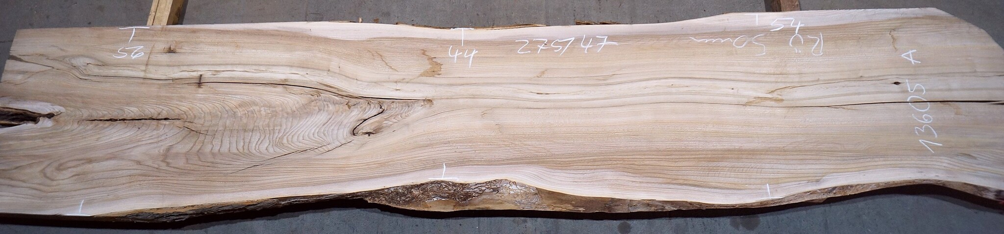 Dutch elm table top pair, approx. 2x 2750 x 470 x 50 mm, 13605a+b, milled, kiln dried, cracks, ingrown bark, knots. You will receive the exact product shown on the pictures.