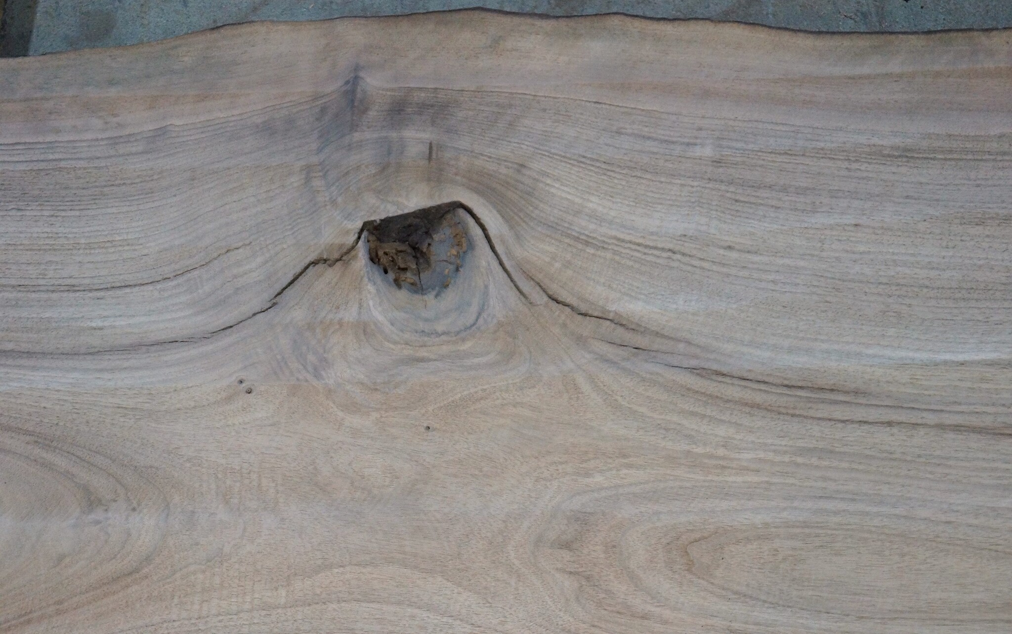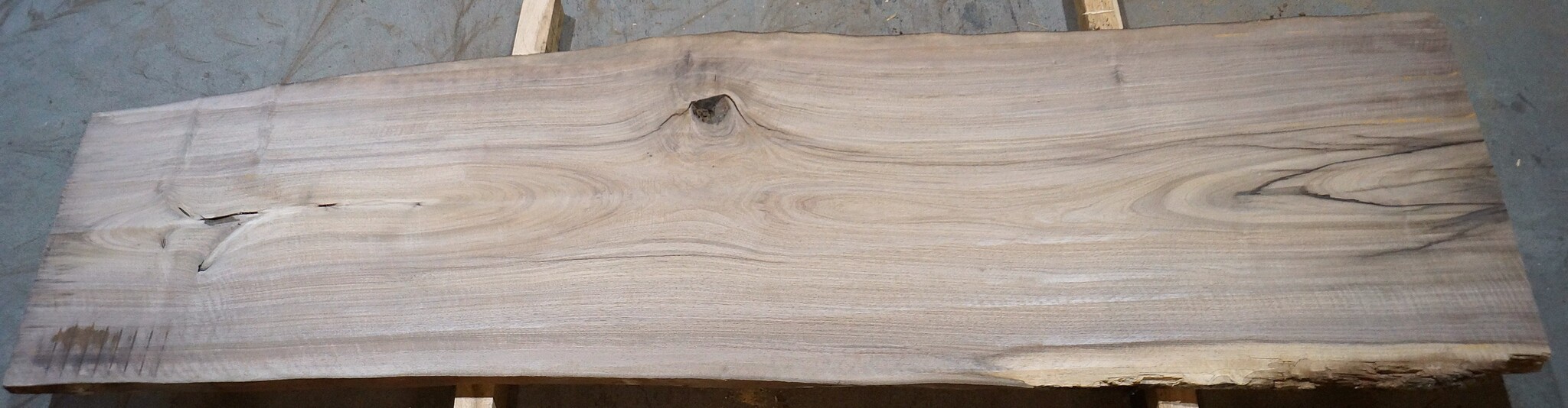 Europ. Walnut, milled, approx. 2650 x 580/670/720 x 52 mm, 13633, kiln dried, cracks, soft sap, knots. You will receive the product as shown.