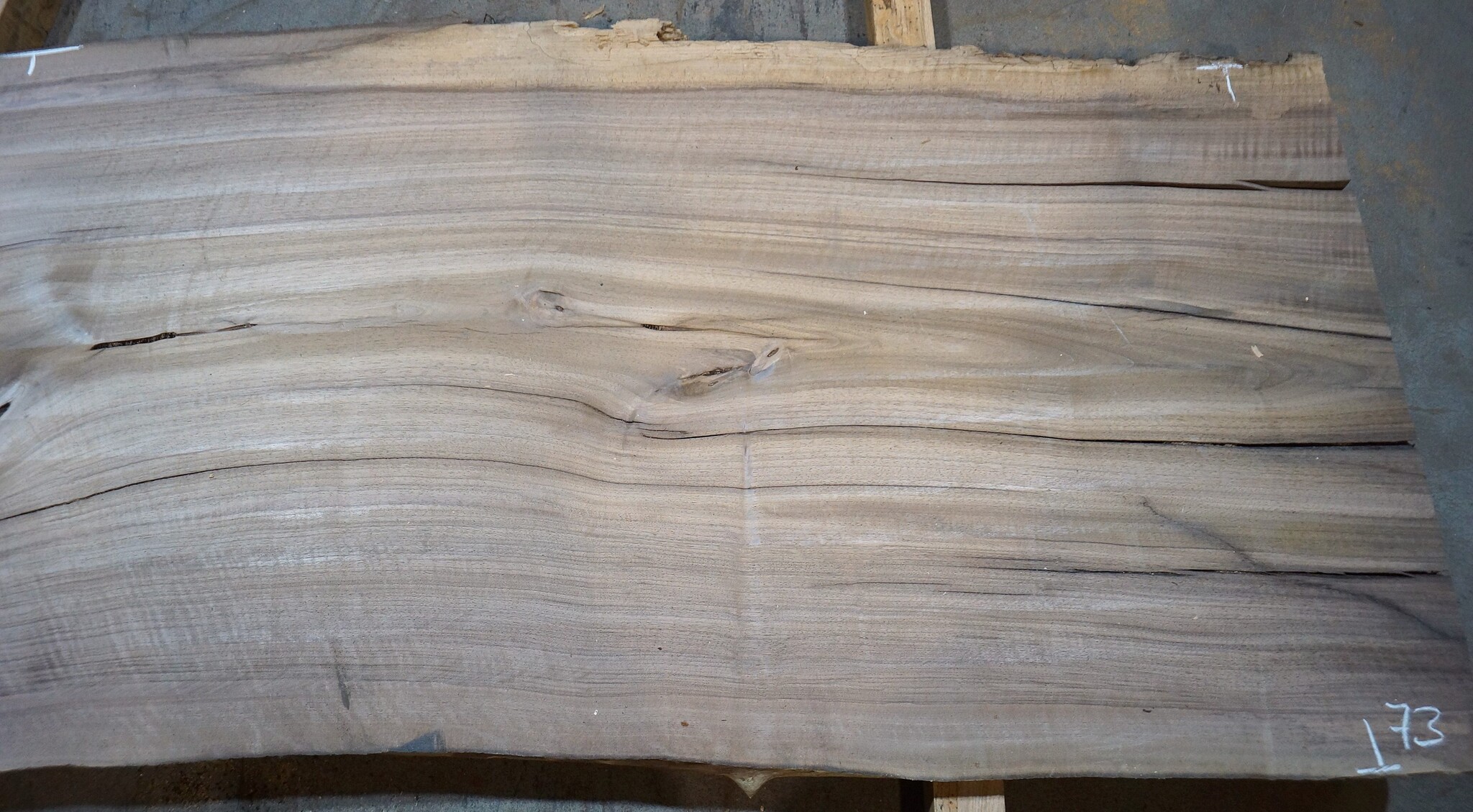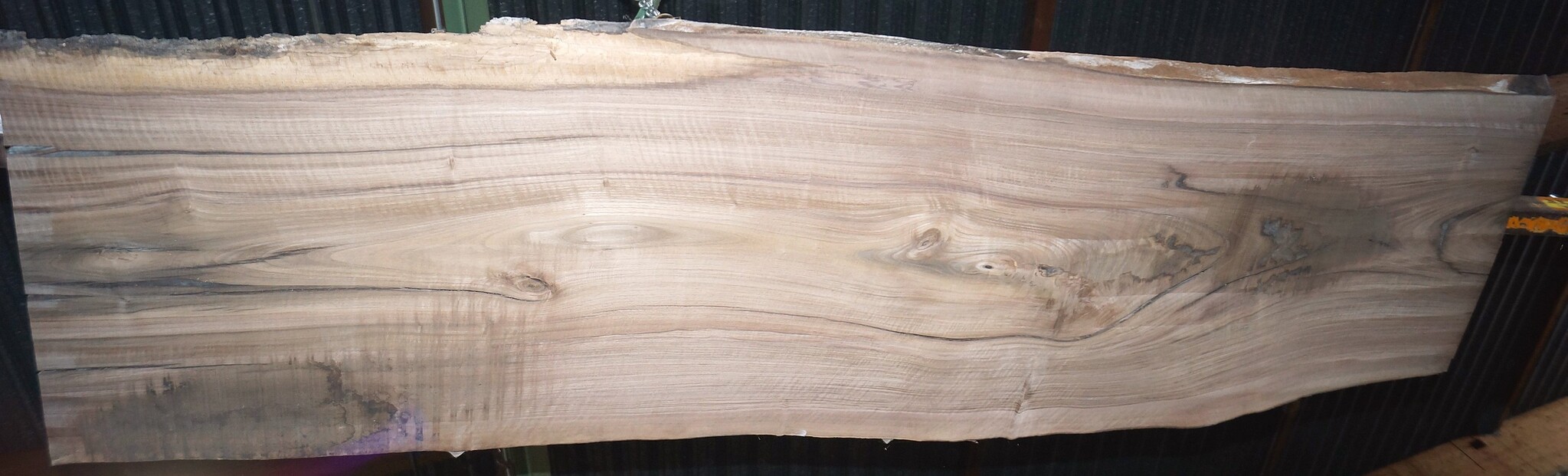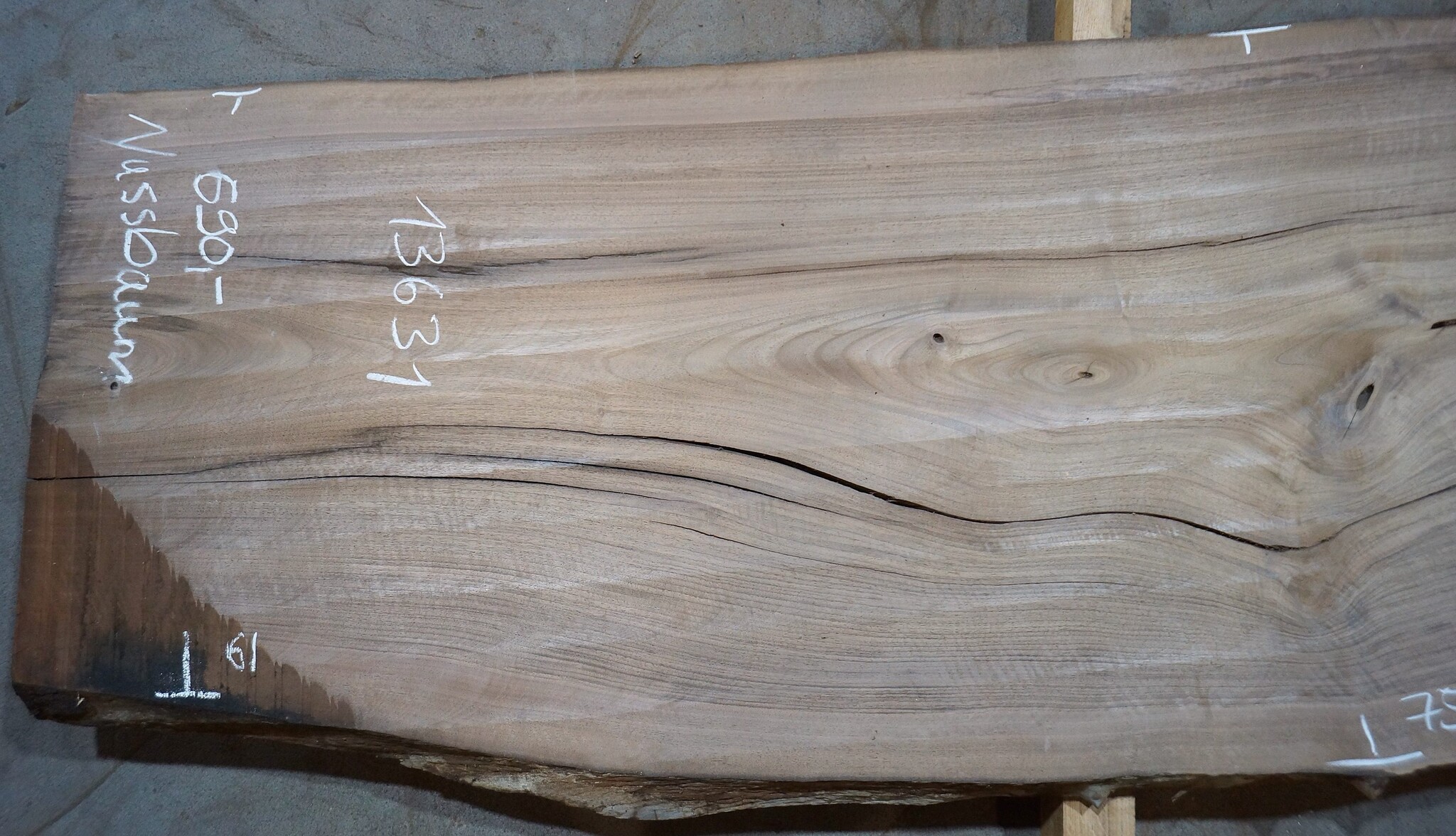 Europ. Walnut, milled, approx. 2650 x 610/750/730 x 50 mm, 13631, kiln dried, cracks, soft sap, holes. You will receive the product as shown.