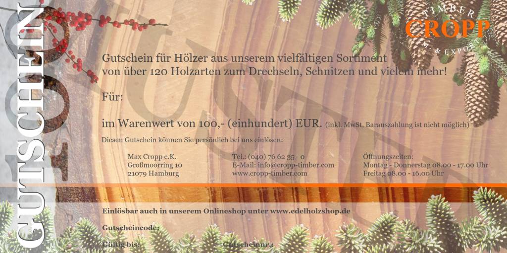 Gift card, worth 100 Euros, a gift idea for every wood lover