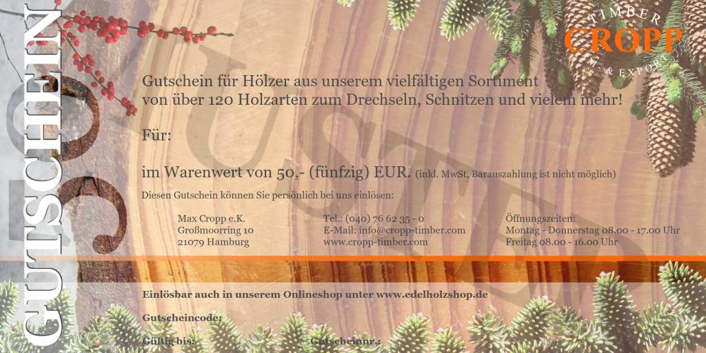Gift card, worth 50 Euros, a gift idea for every wood lover