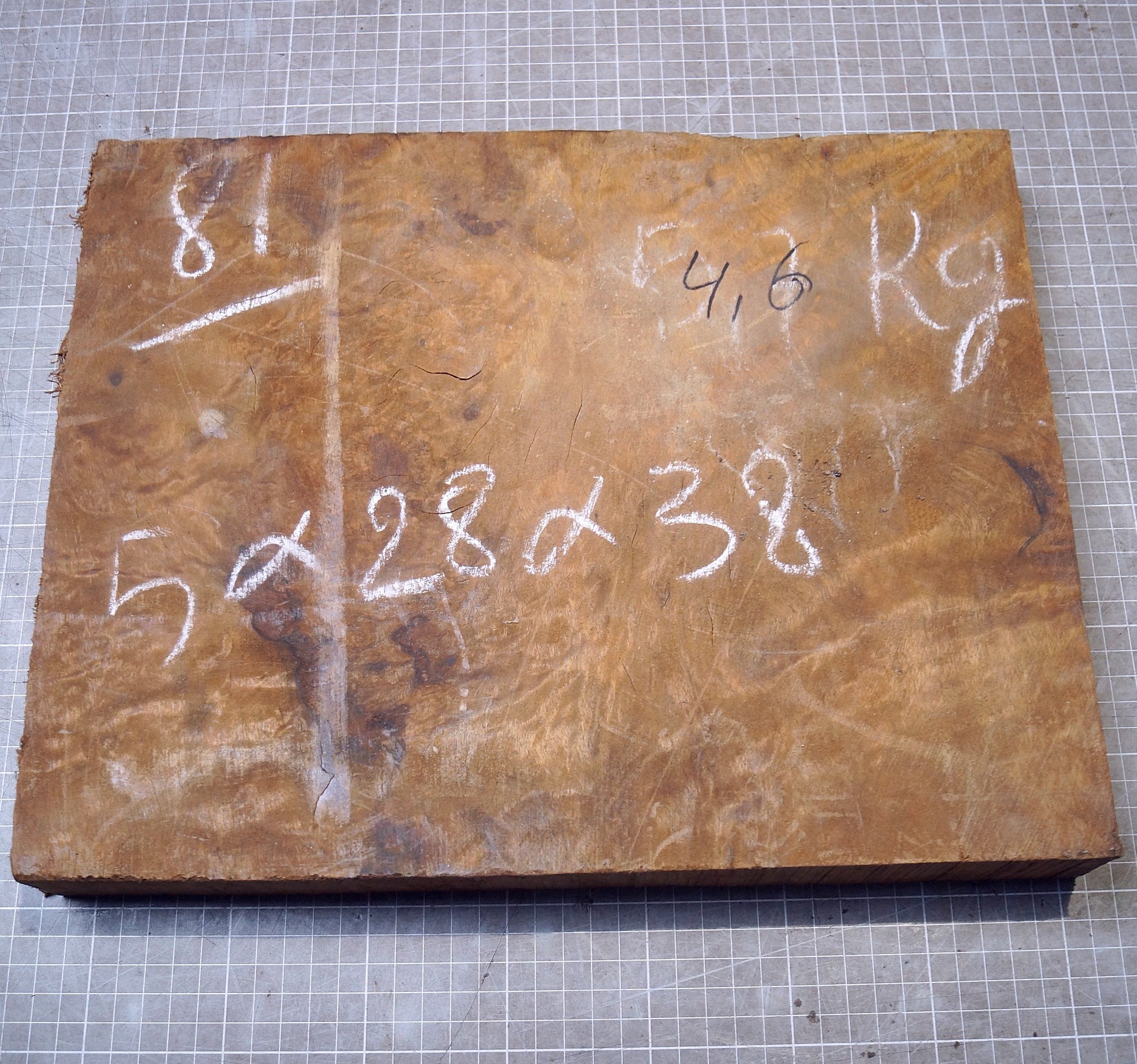 Golden Madrone burl, approx. 370 x 293 x 45mm, 4,36kg