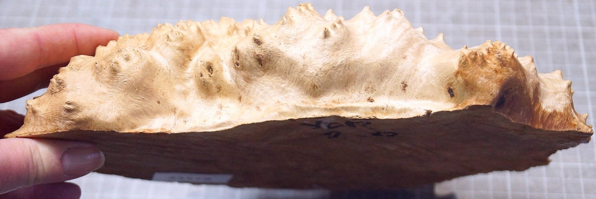 Goldfield Burl knot, approx. 230 x 160 x 65mm, 1,3kg, air dried, cut approx. 06.2022. You will receive the product as shown.