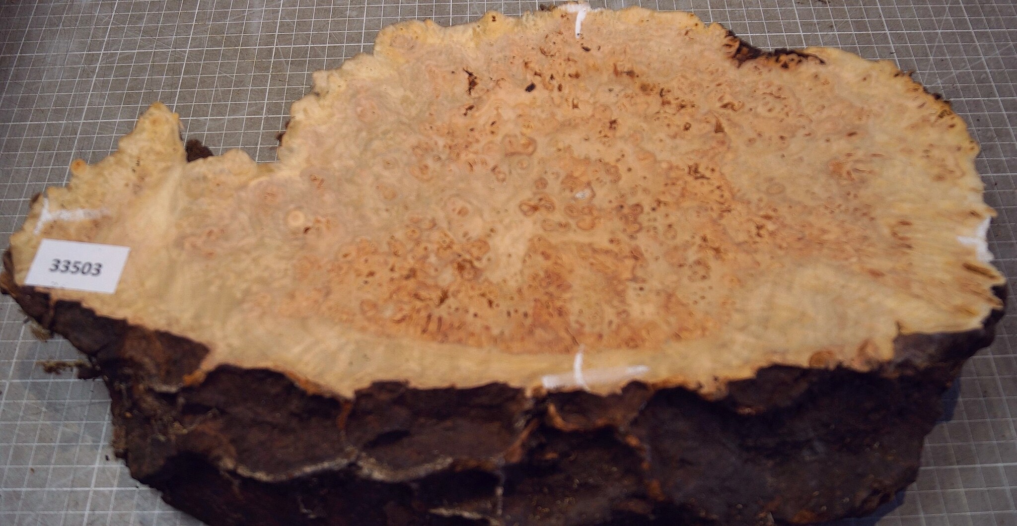 Grisard, approx. 400 x 200 x 70mm, 2,58kg, air dried approx. 2023, bark inclusion, cracks. You will receive the product as shown.