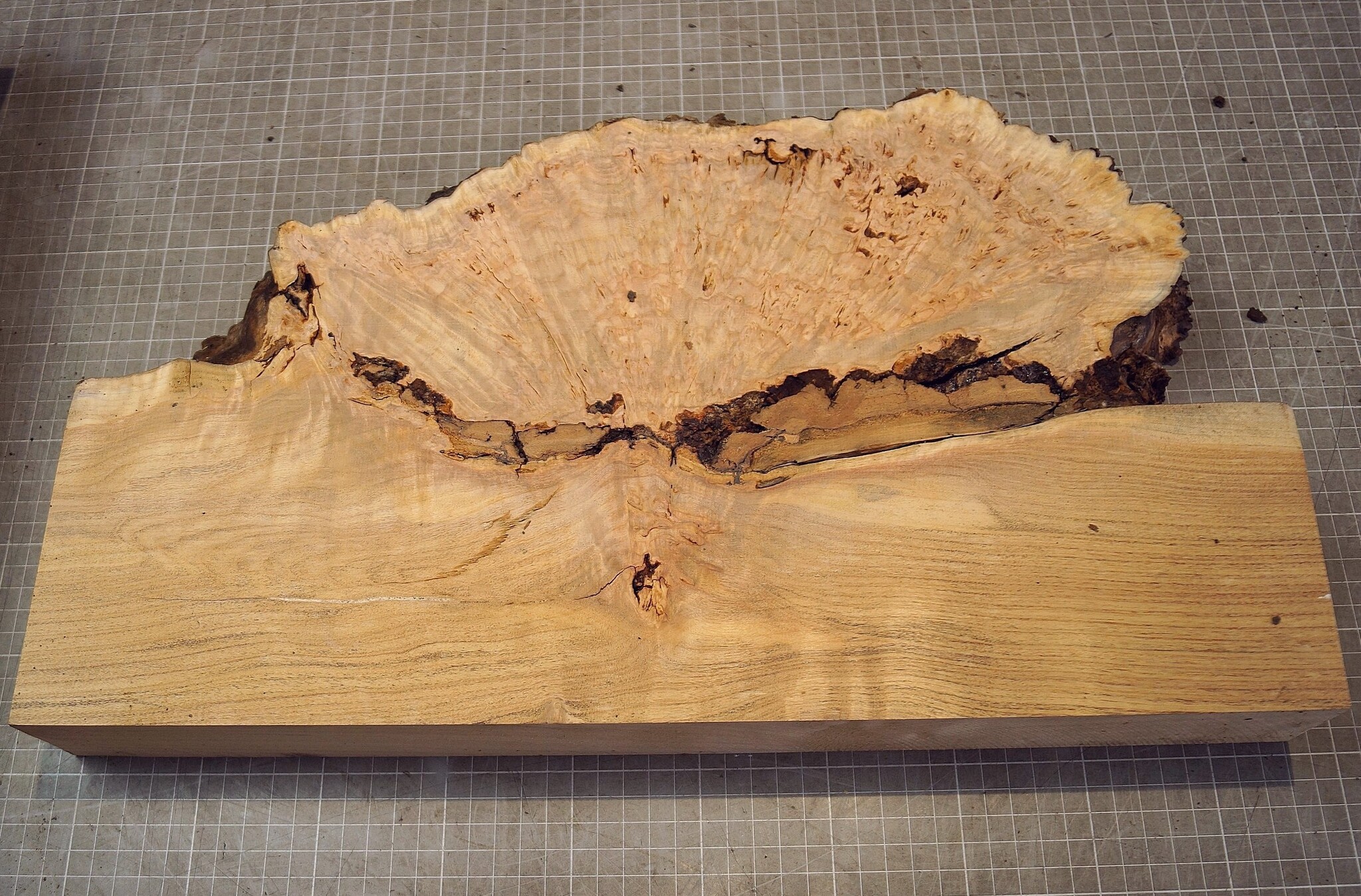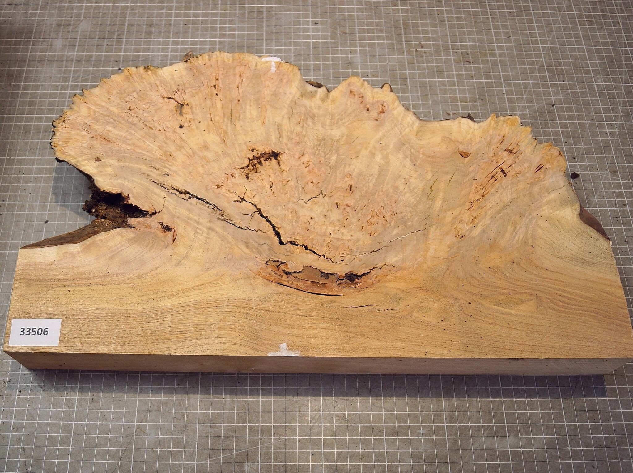 Grisard, approx. 485 x 280 x 57mm, 4,18kg, air dried approx. 2023, bark inclusion, cracks. You will receive the product as shown.