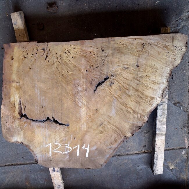 Laurel Burl, table top, approx. 970 x 770 x 65 mm, 12314, air dried, cut in 2010, cracks. You will receive the product as shown.