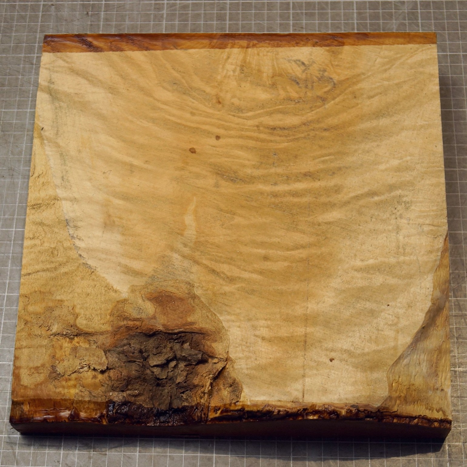 Maple, fiddleback, approx. 280 x 280 x 56mm, 2,66kg, kiln dried, bark inclusion. You will receive the product as shown.