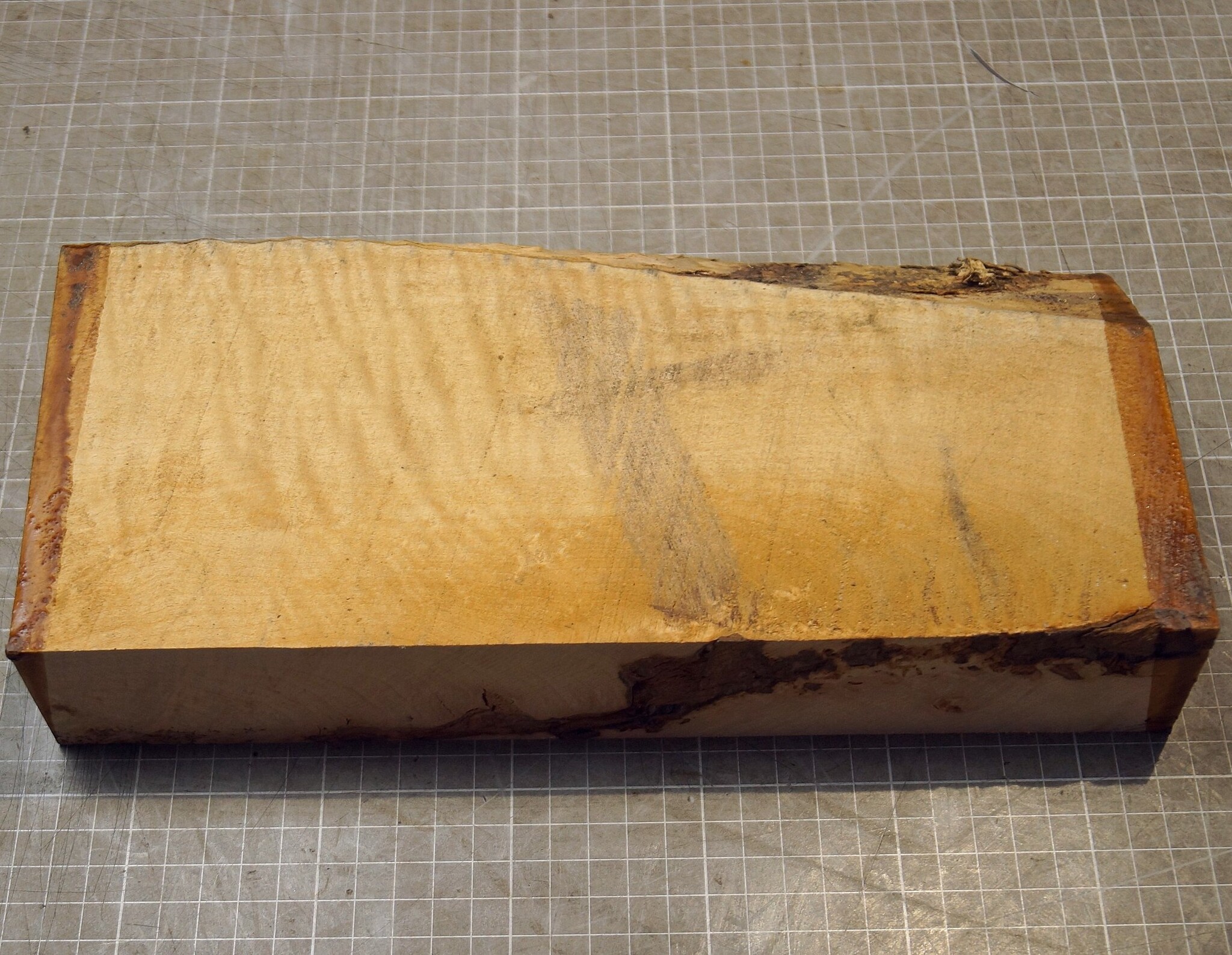 Maple, fiddleback, approx. 300 x 133 x 54mm, 1,66kg, kiln dried, bark inclusion. You will receive the product as shown.