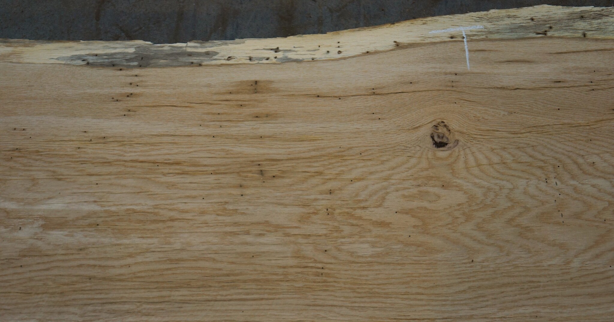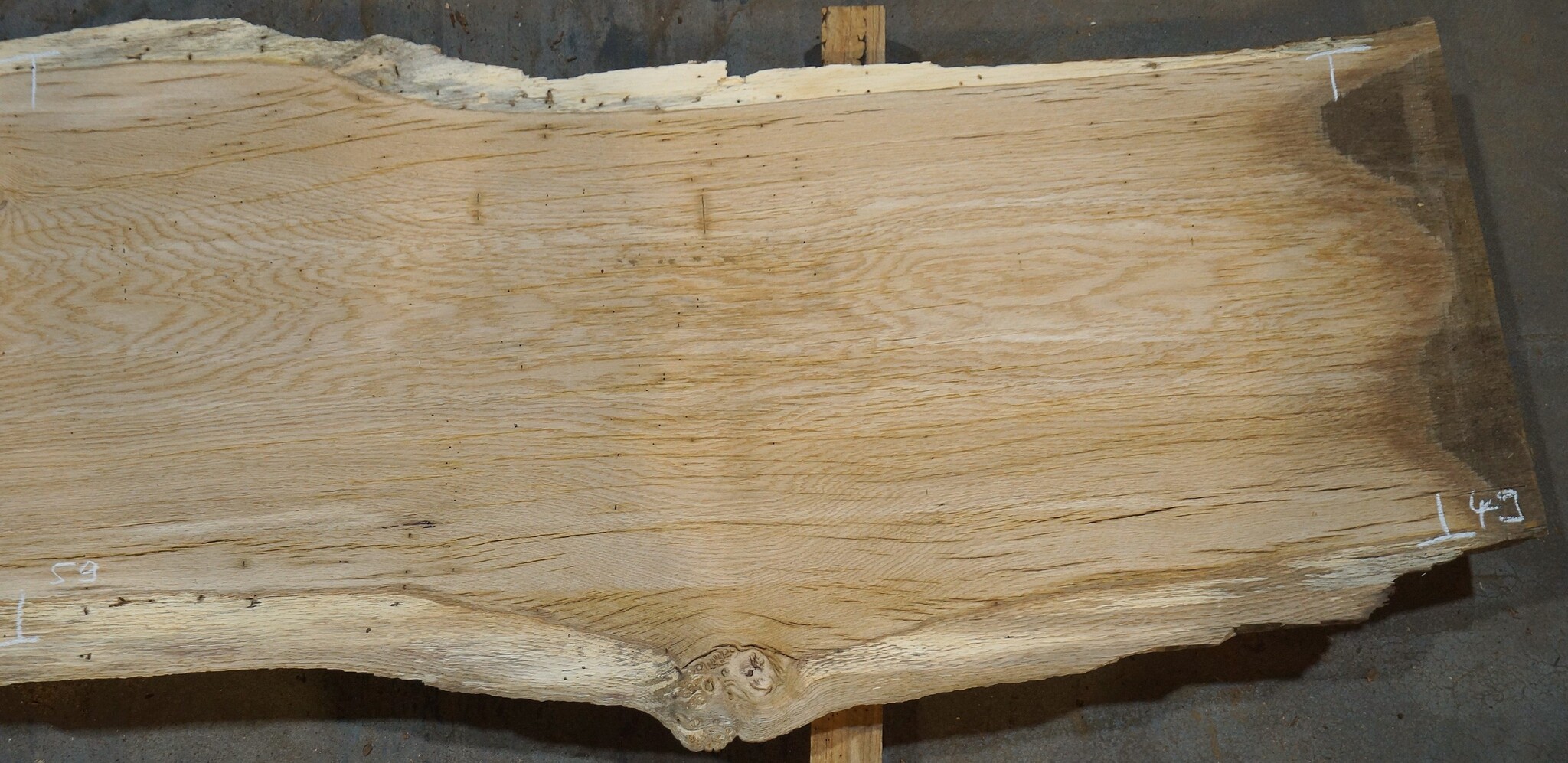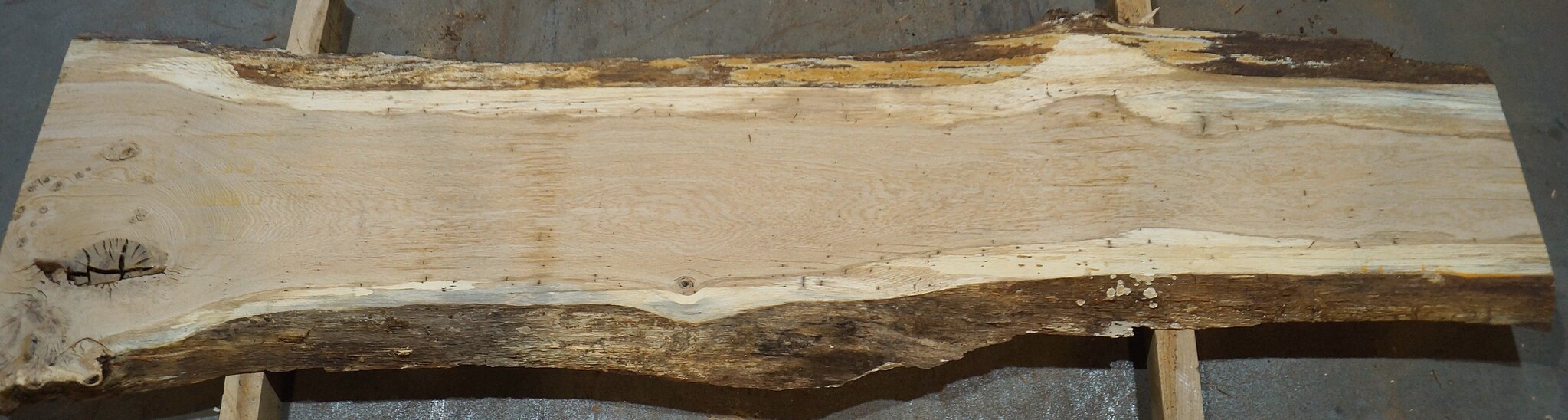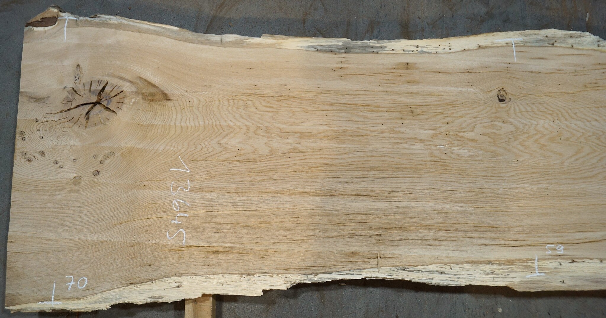Oak, milled, approx. 2650 x 700/530/490 x 52 mm, 13645, kiln dried, knots, cracks, soft sap, insect holes. You will receive the product as shown.