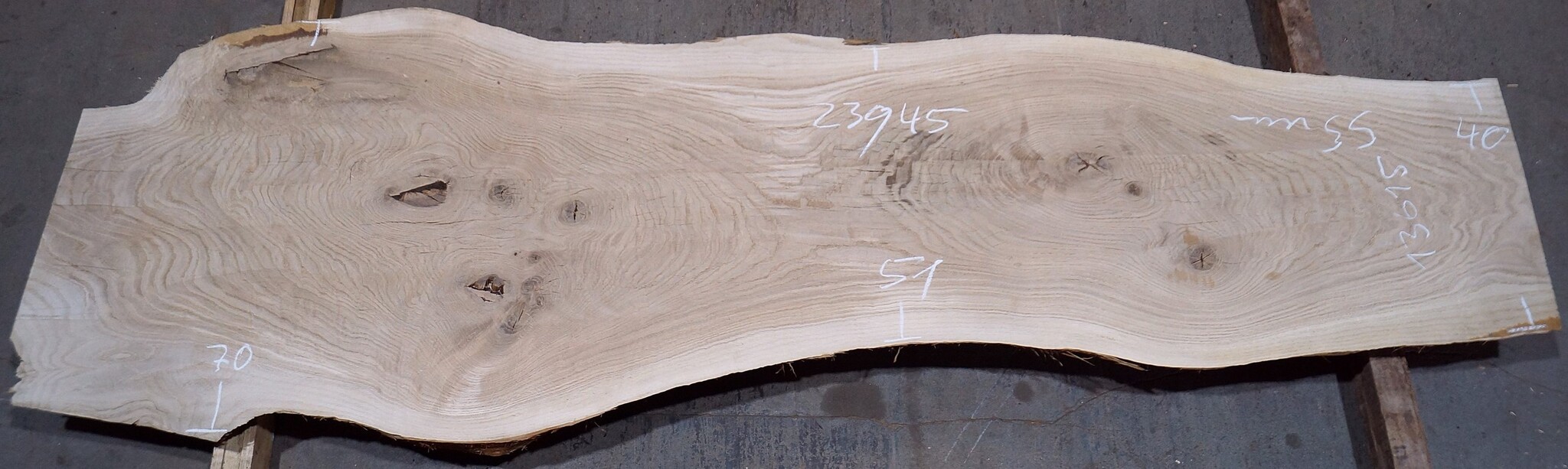 Oak table top, approx. 2300 x 450 x 55 mm, 13615, milled, kiln dried, cracks, ingrown bark, knots. You will receive the exact product shown on the pictures.