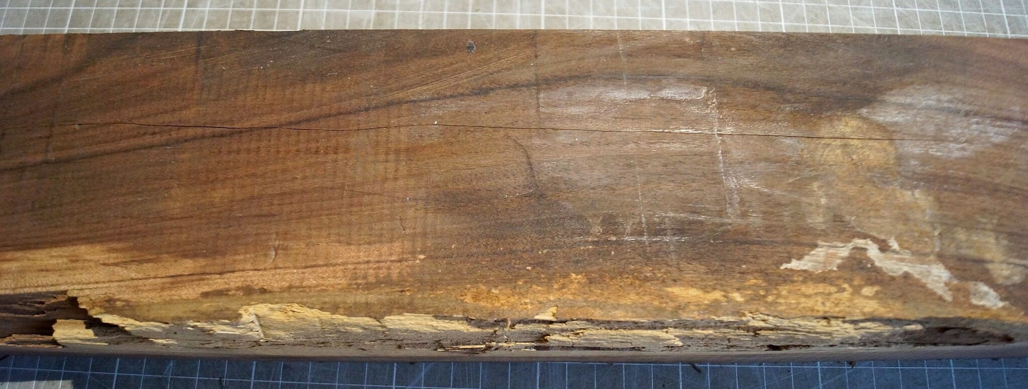 Santos, Morado Rosewood, approx. 900 x 100 x 52 mm, air dried, cut approx. 2020, insect holes, cracks. You will receive the exact product, which is shown on the pictures.