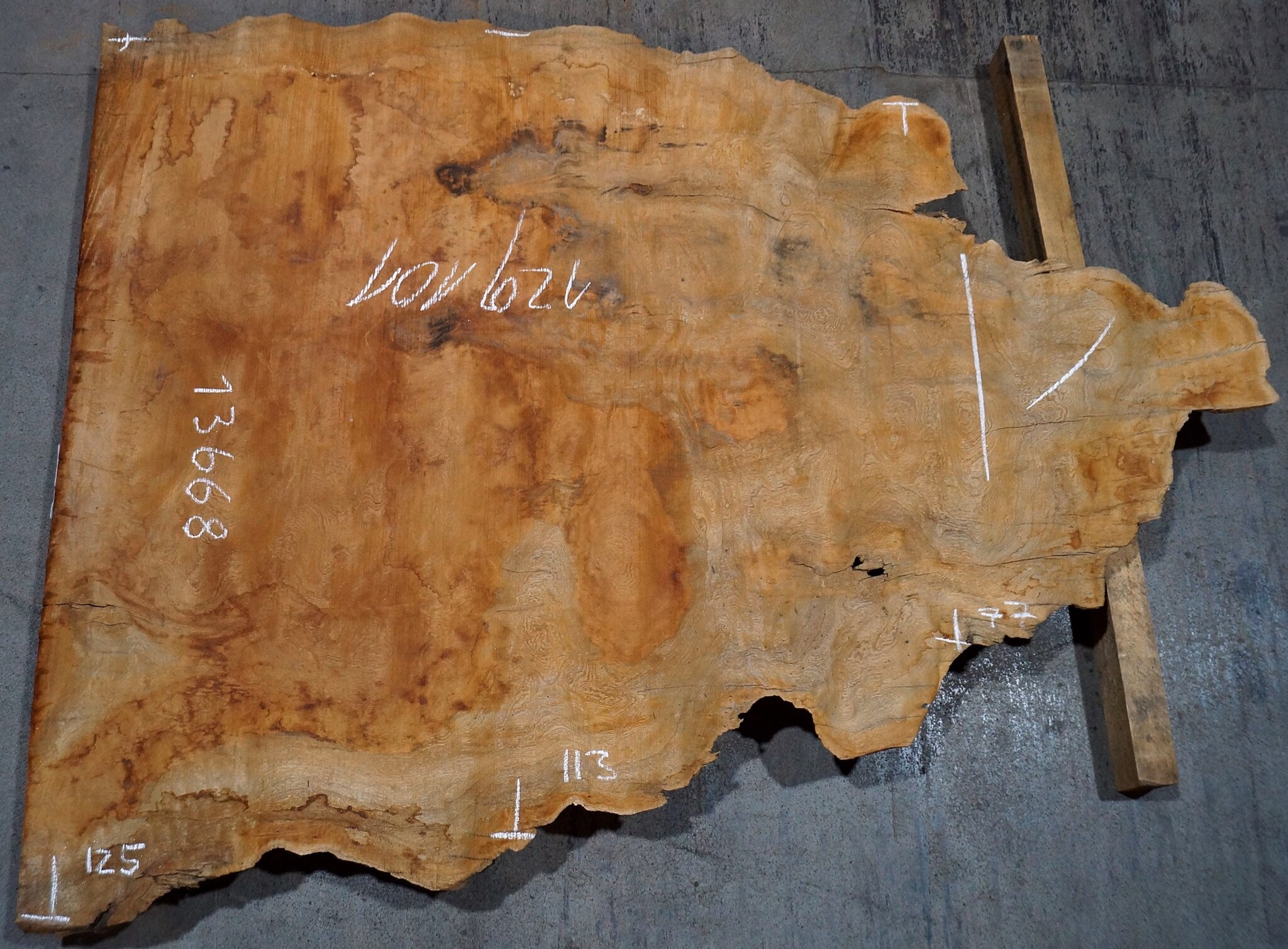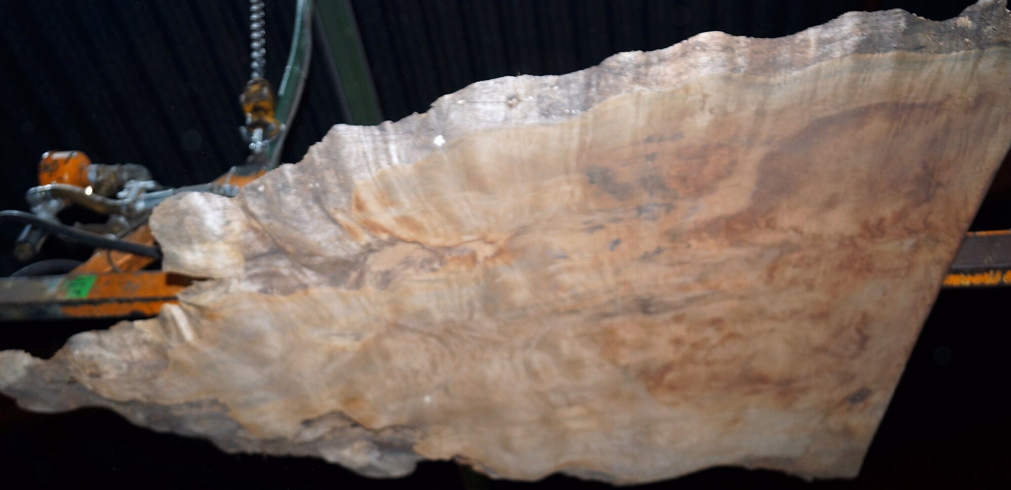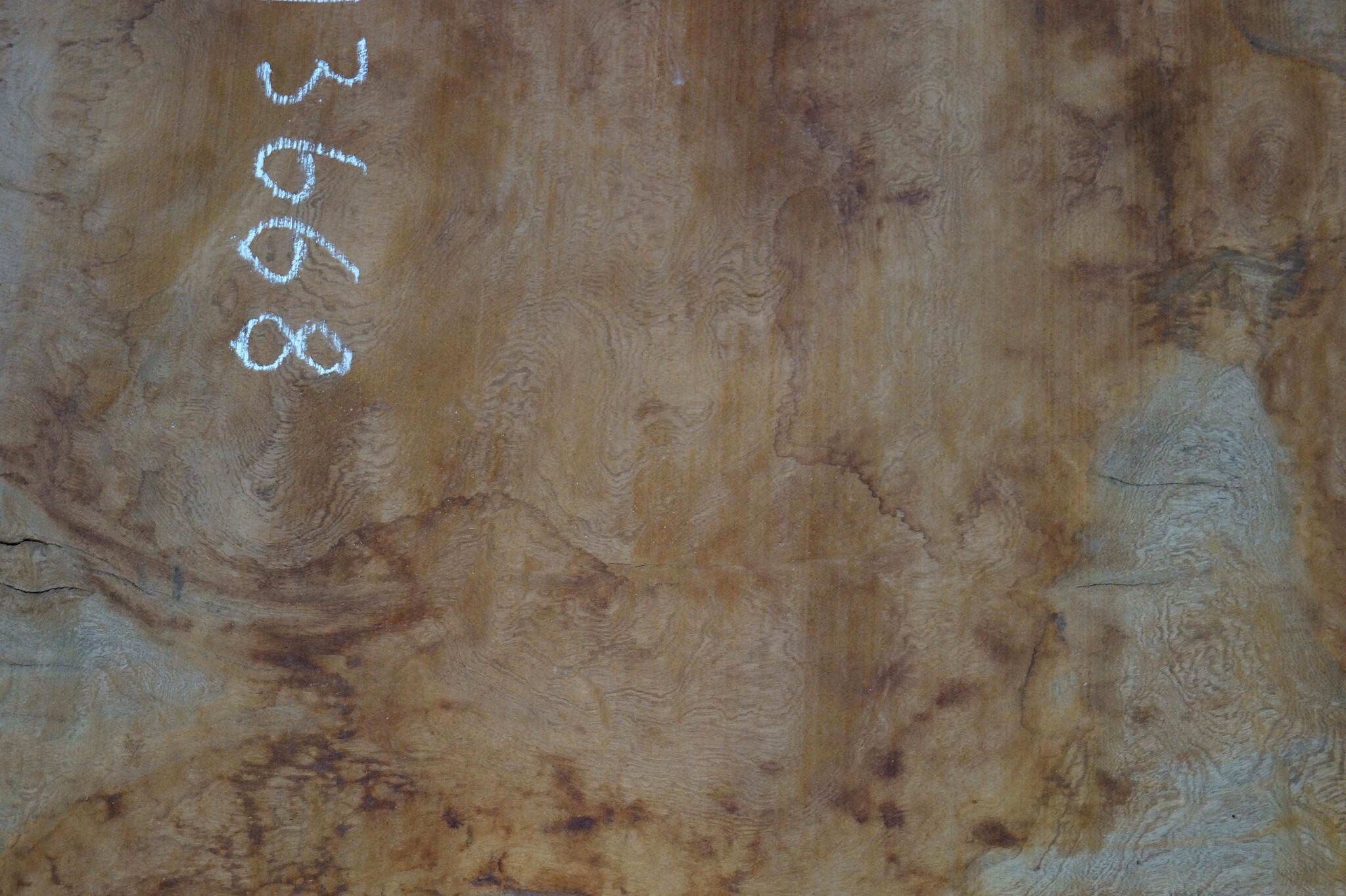Sapeli Mahogany pommelé, approx. 1200 x 1010 x 40 mm, 13668, kiln dried, curved, insect holes, ingrown bark, cracks. You will receive the exact product which is shown on the pictures.